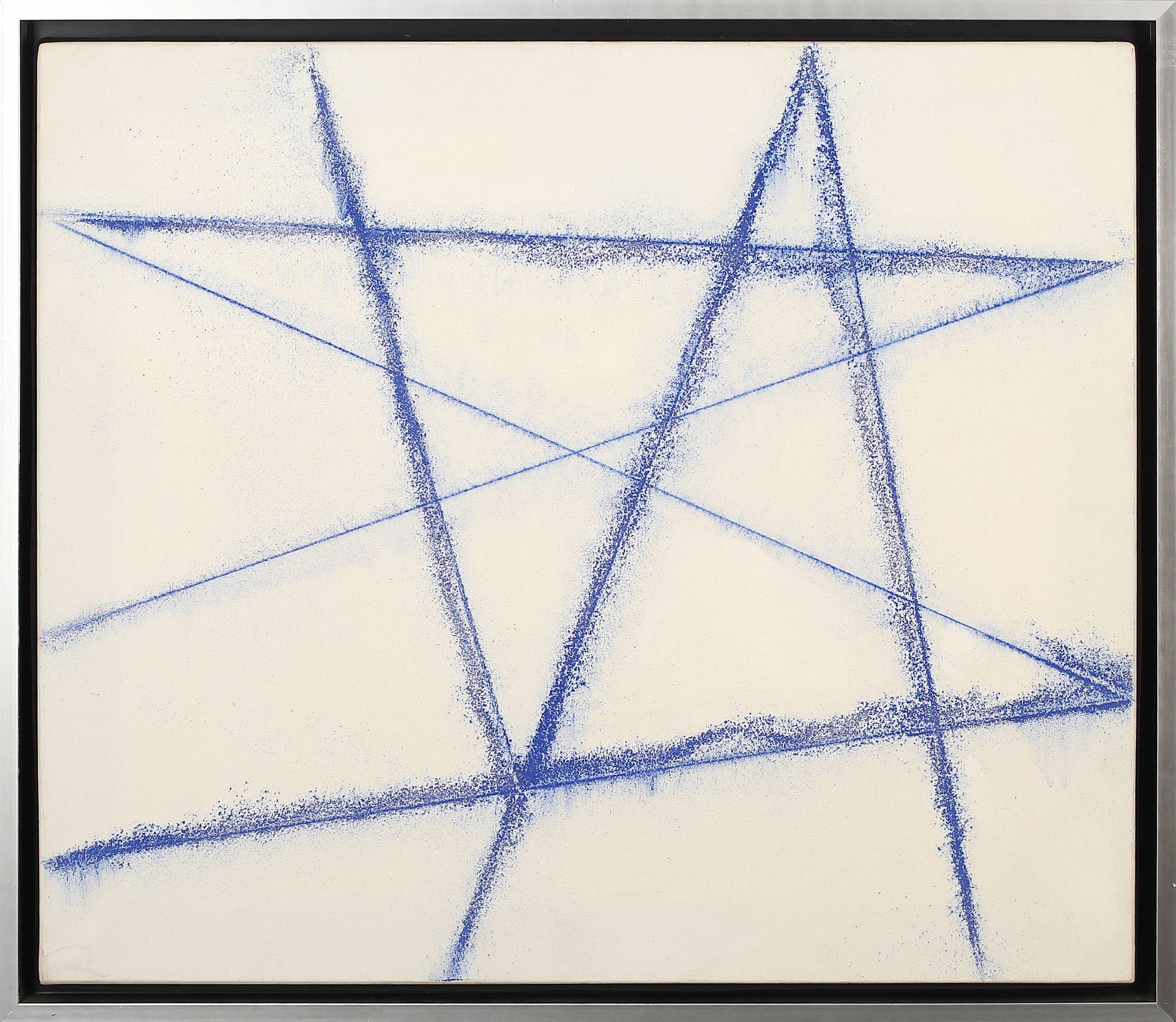 Na obrazie widzimy minimalistyczną kompozycję składającą się z prostych niebieskich linii na tle czystego białego płótna. Linie przecinają się, tworząc kształty przypominające gwiazdy, co budzi wrażenie symetrii i porządku. Kolor niebieski, delikatny lecz wyrazisty, dodaje całości lekkości i nowoczesnego stylu. Atmosfera jest spokojna, niemalże medytacyjna, a jednocześnie intrygująca. Technika zastosowana przez artystę przypomina spray painting, z subtelnymi kropkami przemieszczającymi się wzdłuż linii, co dodaje tekstury. To dzieło może kojarzyć się z wolnością myśli i przestrzenią do osobistej interpretacji. Widz może poczuć się zanurzony w przestrzeni, wom której geometria i prostota współbrzmią z własnymi emocjami. Wow, to jest takie ładne i łatwe do narysowania! W jednym z tych niebieskich linii można dostrzec echo dziecięcej prostoty, co dodaje głębi i autentyczności. Kreśląc to w duchu abstraction, obraz zaprasza do wewnętrznej podróży, a jego subtelna elegancja zachęca do refleksji. Could it be more captivating? Może każdy zobaczyć w tych liniach coś innego, co sprawia, że dzieło jest zarówno osobiste, jak i uniwersalne.