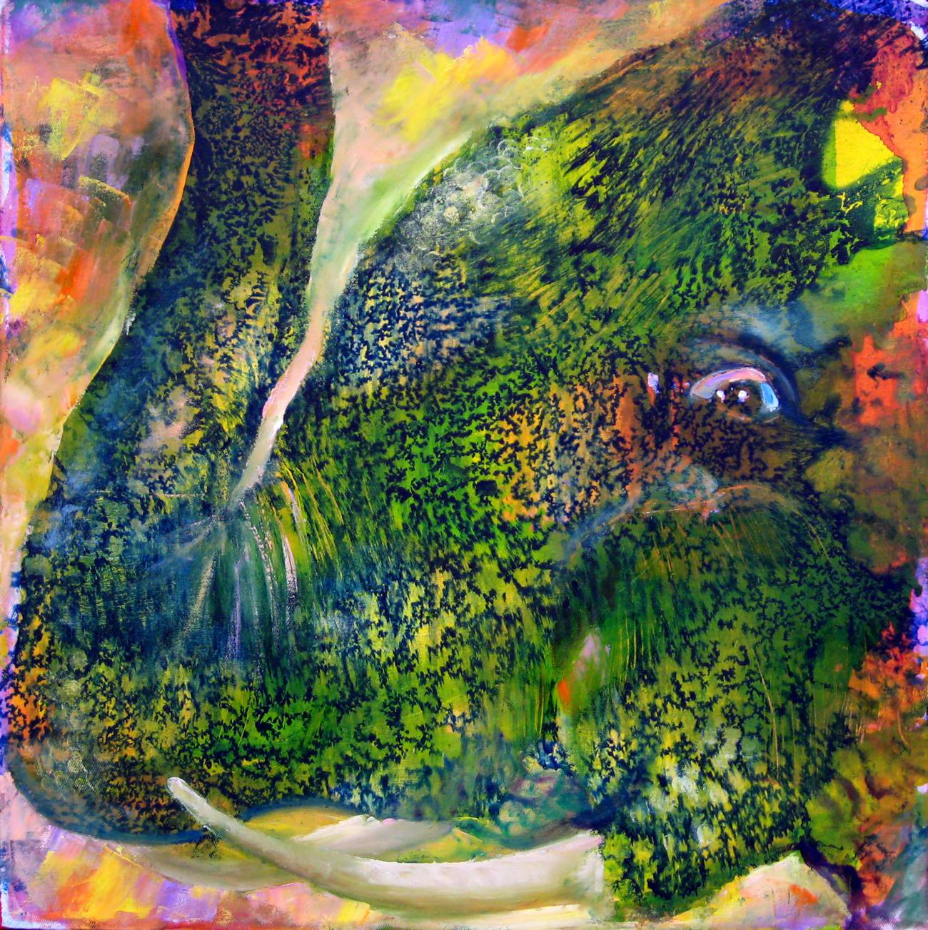 Na obrazie dominują intensywne kolory: soczysta zieleń przeplata się z energetycznym różem i żółcią, tworząc dynamiczną kompozycję pełną kontrastów. Artysta zbudował na płótnie skomplikowaną strukturę, gdzie kształty przypominają skrzydła motyla albo zarys nieznanego krajobrazu. Oko widza natychmiast przyciąga punkt kulminacyjny – błyszczące oko, które emanuje tajemniczym uśmiechem. Atmosfera obrazu jest wręcz nieuchwytna. Na granicy między rzeczywistością a snem. Styl, to prawdziwe tour de force abstrakcjonizmu, z mieszanką technik, jakby malarz eksperymentował bez żadnych ograniczeń. Emocje, jakie można odczuć, oscylują między zaciekawieniem a onirycznym spokojem. Czasem przypomina mi to, że malarstwo jest jak magiczne okno, które pozwala zajrzeć w inny, "colourful" świat pełen ukrytych znaczeń. Super, podoba mi się to! Ten obraz jest jak tajemnicza opowieść, której każdy widz może nadać własne zakończenie.