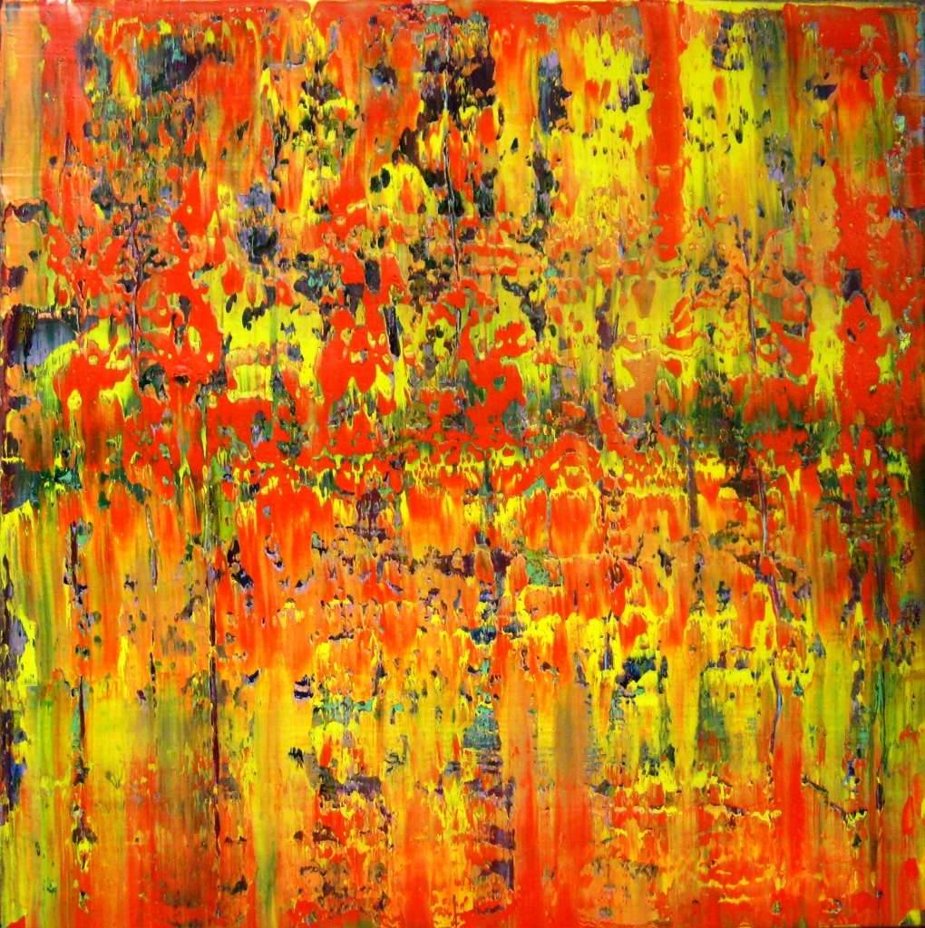 Obraz tętni życiem dzięki intensywnym kolorom. Pomarańcze, żółcie i czerwienie przeplatają się w abstrakcyjnej kompozycji, tworząc dynamiczny chaos. Wydaje się, jakby artysta zatrzymał fragment wybuchu fajerwerków na płótnie. Jest trochę jak w kalejdoskopie, gdzie barwy tańczą i przenikają się nawzajem. Nastrój obrazu jest pełen energii; patrząc na niego, czujesz przypływ adrenaliny. To jak chwila pełna ekscytacji w parku rozrywki. Artysta zastosował technikę impasto, nakładając grube warstwy farby, co dodaje dziełu tekstury i głębi. Miejscami widać odważne pociągnięcia pędzla, jakby artysta działał impulsywnie, z impetem. Patrząc na obraz, można odczuć radość, ale też pewne zagubienie. Co tu się właściwie dzieje? Dla siedmiolatka mógłby być to po prostu "ognisty las pełen kolorowych potworków". Ten artystyczny chaos może wywołać uśmiech i zachwyt. Seriously, kto by pomyślał, że takie barwy mogą tak działać na zmysły. Osobiście, czuję że obraz jest trochę jak życie: pełen nieprzewidzianych chwil, w którym emocje mieszają się jak farby. Czasem po prostu trzeba się zatrzymać i podziwiać ten wir kolorów.