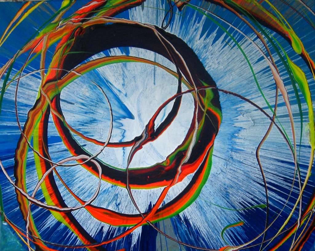 Obraz eksploduje niemal kosmicznym połączeniem kolorów i form. Dominują głębokie odcienie niebieskiego, które są przerywane intensywnymi czerwieniami i pomarańczami. Centralna kompozycja przypomina spirale wirujące w nieskończoność. Ich dynamika jest niemal namacalna, tworząc efekt przyciągania wzroku jak do epicentrum galaktyki. Artysta wykorzystuje technikę mieszaną, gdzie farba zdaje się spływać swobodnie, ukazując mistrzowską kontrolę nad chaos. Takie połączenie wywołuje uczucie zarówno spokoju, jak i napięcia, jakbyśmy byli tuż na skraju czegoś wielkiego. Zaskakujące i pełne energii pociągnięcia pędzla dodają temu dziełu elementu "wow factor". Patrząc na obraz, ma się wrażenie jak w trakcie nie kończącej się podróży. "To wygląda jak wybuchające niebo!" – powiedziałby entuzjastycznie 7-latek. Dzieło może symbolizować zarówno narodziny wszechświata, jak i codzienny chaos naszego życia. Odbiorca odnajduje tu niemal organiczny rytm i harmonię. Istnieje w nim nieuchwytna magia, która sprawia, że serce bije szybciej.