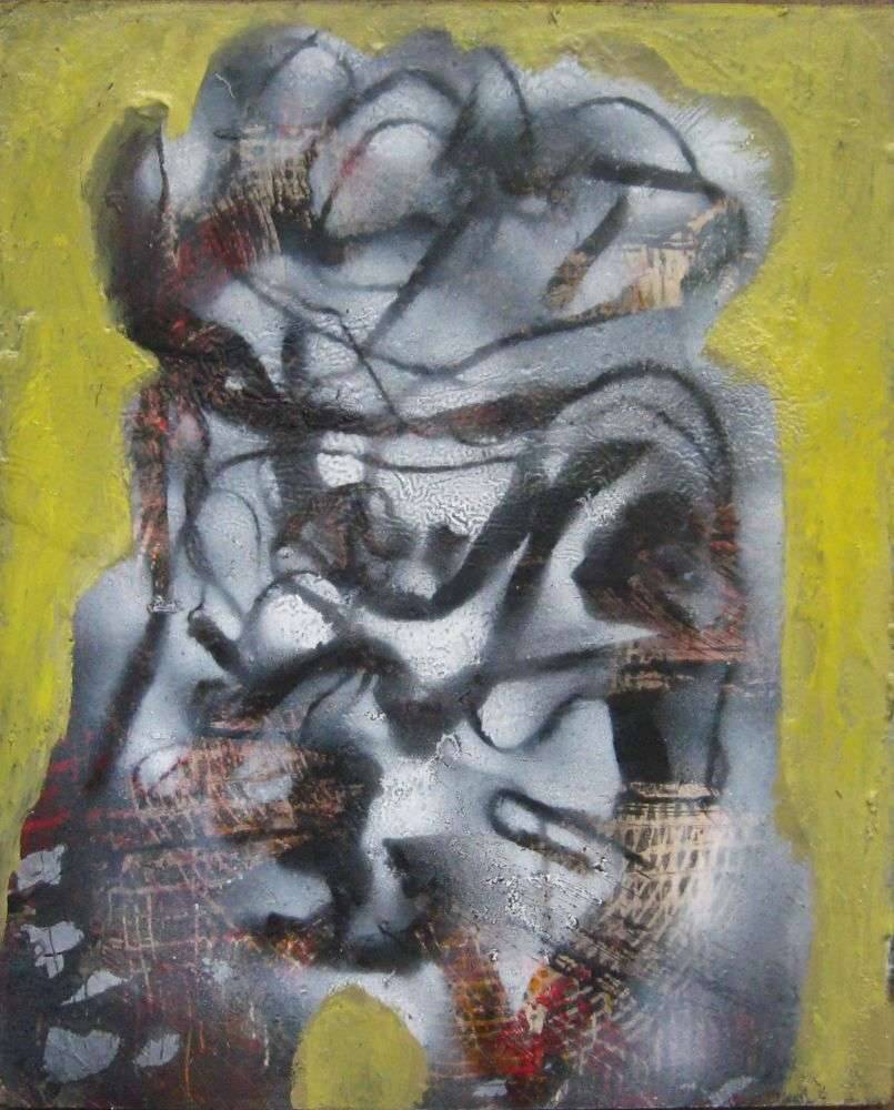 Na obrazie dominuje dynamiczna mieszanka kolorów i kształtów. Intensywna żółć otacza chaotyczną kompozycję ciemnych linii i mgławicowych szarości, które wirują w centrum. Szorstka tekstura i kontrastujące odcienie czerni i szarości wciągają wzrok, jak gdyby artysta chciał nas wciągnąć w wir tajemniczych emocji. Całość wygląda jak wirująca burza myśli, gdzie nieład spotyka się z kontrolą. Atmosfera obrazu jest nieco mroczna, jak skomplikowane sny lub myśli rodzące się nocą. Styl? Ah, to czysta abstrakcja! Bez żadnych formalnych barier, artysta maluje swobodnymi pociągnięciami, łącząc techniki malarskie z nieco street artowym vibe’m. Dla mnie to przypomina trochę bajki, gdzie coś się dzieje, ale nie wiadomo co. Może to chaos w głowie artysty, a może chęć uchwycenia nieuchwytnego. Wywołuje uczucie zagubienia i fascynacji jednocześnie. Patrząc na to, czuję pewnego rodzaju niepokój, ale i zaciekawienie – co się kryje za tymi zawijasami? Może Ty widzisz w tym coś innego, kto wie. A może to po prostu "artistic freedom", gdzie każdy może znaleźć swoje znaczenie.
