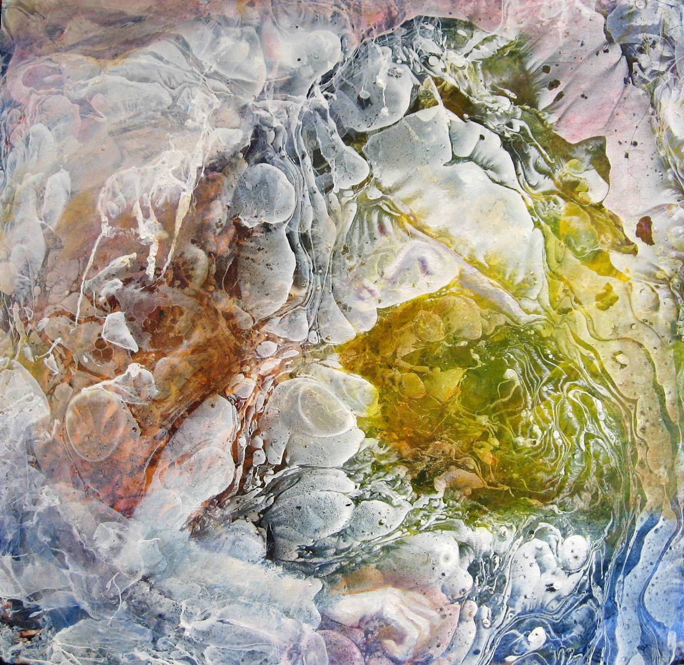 Ta abstrakcyjna kompozycja to istna eksplozja kolorów i faktur, które przyciągają wzrok jak magnes. Od razu rzuca się w oczy intensywny miks barw – od zieleni, przez żółcie, aż po delikatne błękity i fiolety. To jakby artysta złapał kolorową mgłę i zamknął ją w ramy obrazu. Kształty są płynne, niemal jak wodne obłoki, które wydają się poruszać, mimo że są statyczne. Jest w tym coś hipnotyzującego. Chaos i harmonia jednocześnie. Wow. Atmosfera tego dzieła jest nieco tajemnicza, wręcz eteryczna. Ma się wrażenie, jakby wciągało się do innego wymiaru. Technika użyta przez artystę to prawdopodobnie akrylowe techniki wylewane, które nadają obrazowi dynamiczność i nieprzewidywalność. No co tu dużo gadać, to po prostu mesmerizing. Odbiorca może poczuć spokój, ale też ekscytację – jakby właśnie odkrywał nową planetę. Artystyczne flow jest tu kluczowe, a cała kompozycja wydaje się żyć własnym życiem. Jak powiedziałoby dziecko: to wygląda, jakby ktoś rozlał galaktykę! I trzeba przyznać, że choć obraz nie emanuje krzykliwością, to przyciąga uwagę na dłużej.
