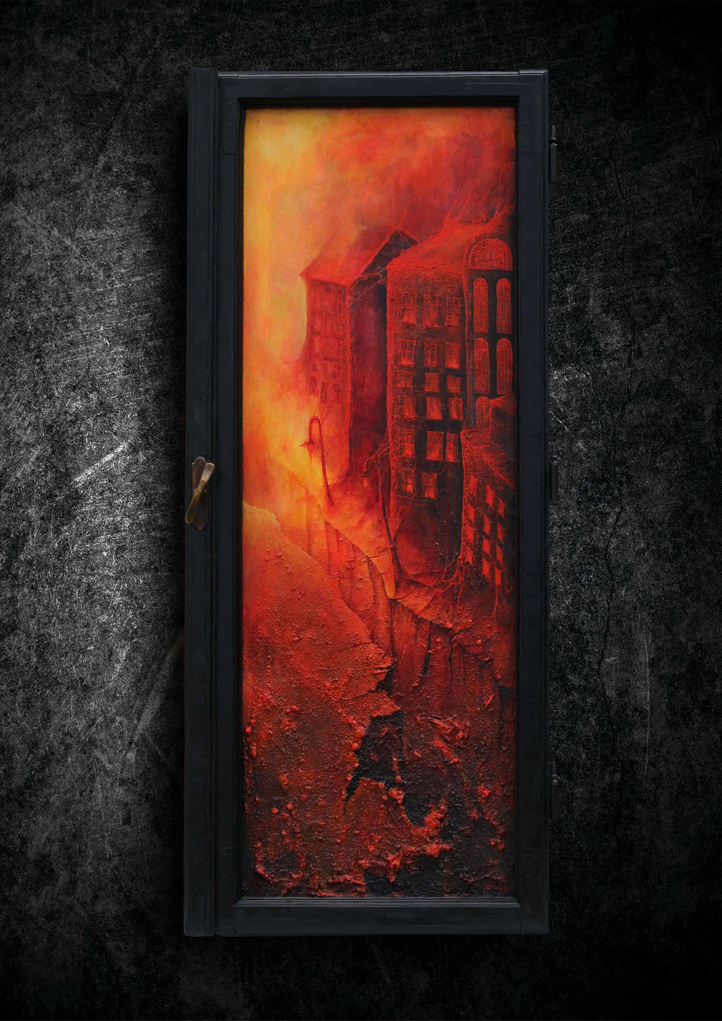 Obraz na pierwszy rzut oka przywodzi na myśl ognistą wizję apokalipsy. Dominują w nim intensywne odcienie czerwieni, pomarańczu i żółci, tworząc dramatyczny kontrast z ciemnym, prawie czarnym tłem. Sylwetki zniszczonych budynków wyłaniają się z płomieni, jakby były pozostałością po kataklizmie. To dzieło emanuje poczuciem niepokoju i intensywnego dramatyzmu. Czuć tu atmosferę końca świata, ale może to też być symboliczna odnowa. Artystyczny styl jest pełen dynamizmu i intensywności. Artysta używa technik impasto, co dodaje głębi i struktury. Grube nałożenia farby sprawiają wrażenie niemal trójwymiarowej tekstury. Detale budynków choć są symboliczne, sprawiają wrażenie triażu między rzeczywistością a dreamlike wizją. Wyrazistość i ciemność dodają całości niepowtarzalnego charakteru. Dla widza, obraz ten może być poruszającą refleksją na temat kruchości naszego świata. Może wywoływać emocje grozy, ale również fascynacji pięknem destrukcji. To trochę jak wciągająca opowieść, której nie możemy się oprzeć. Dziełem tym można również odczytywać jako metaforyczny obraz wewnętrznych demonów, które płoną w naszych sercach. Wow, to straszne i piękne zarazem.