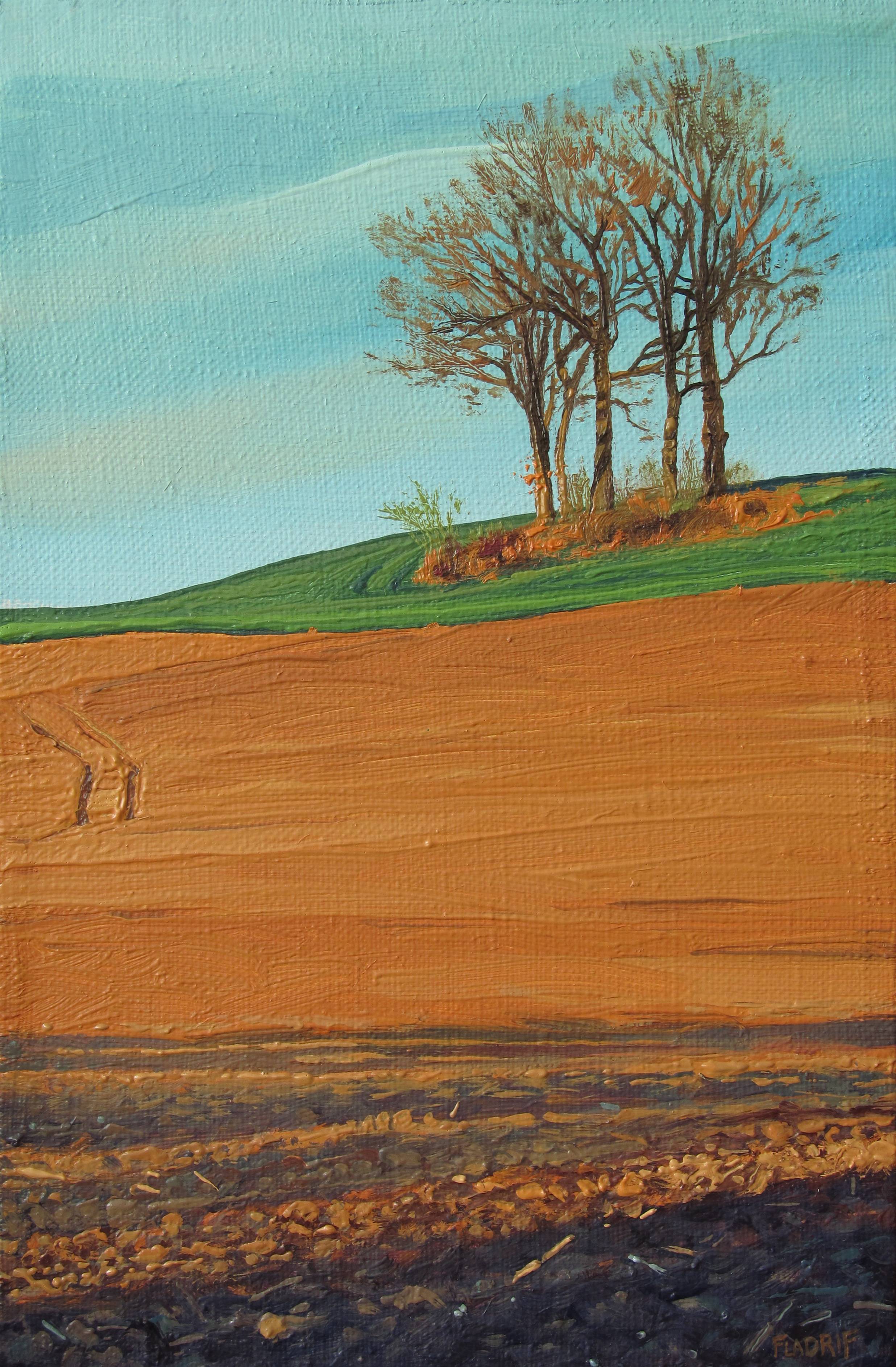 Obraz olejny namalowany na płótnie lnianym, 2015r. Sygnowany ("Fladrif") i opisany na odwrocie [ "Wojciech Pater (Fladrif) 2015" ]. Obraz przedstawia pola położone nad jednym z odrzańskich starorzeczy w okolicach Lubiąża. Został namalowany grubo, z wyraźnym impastem.