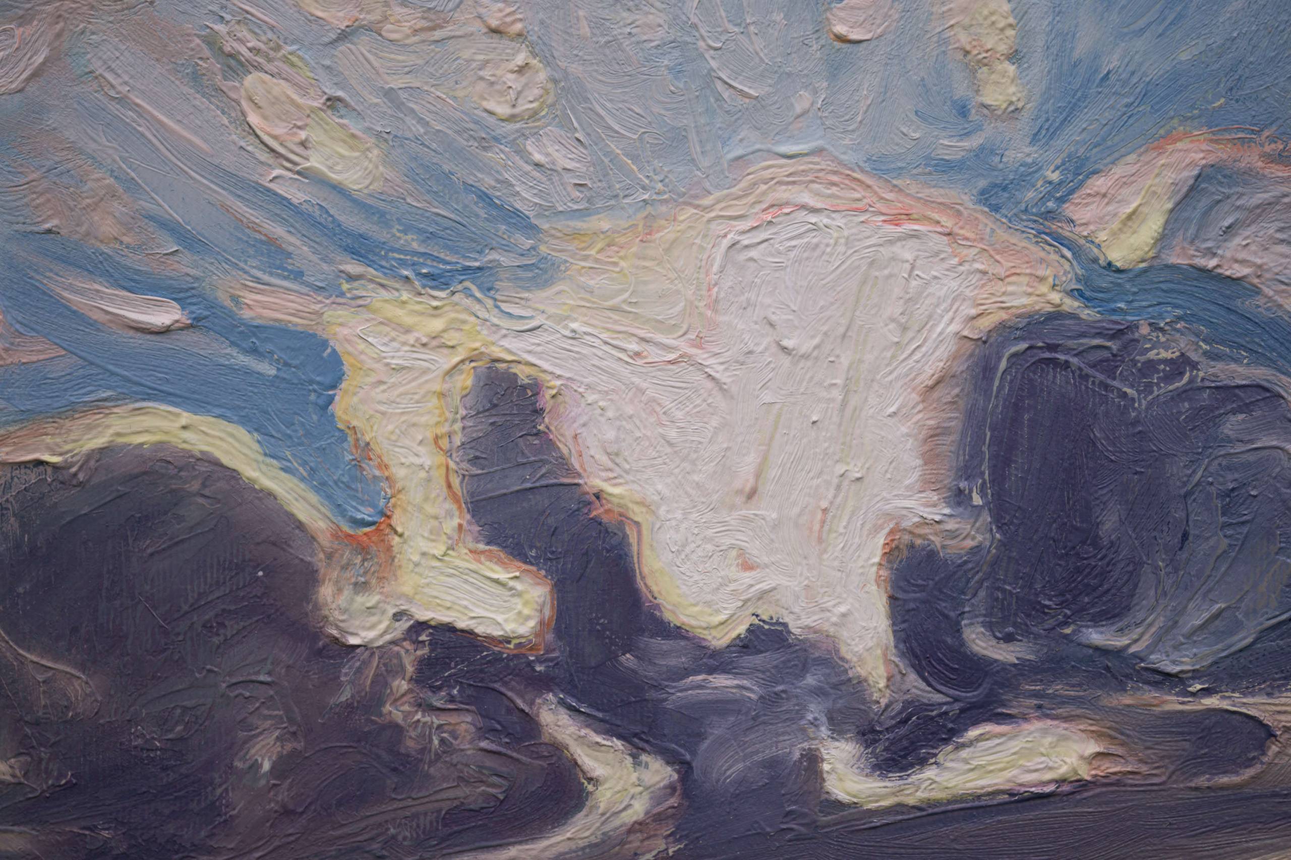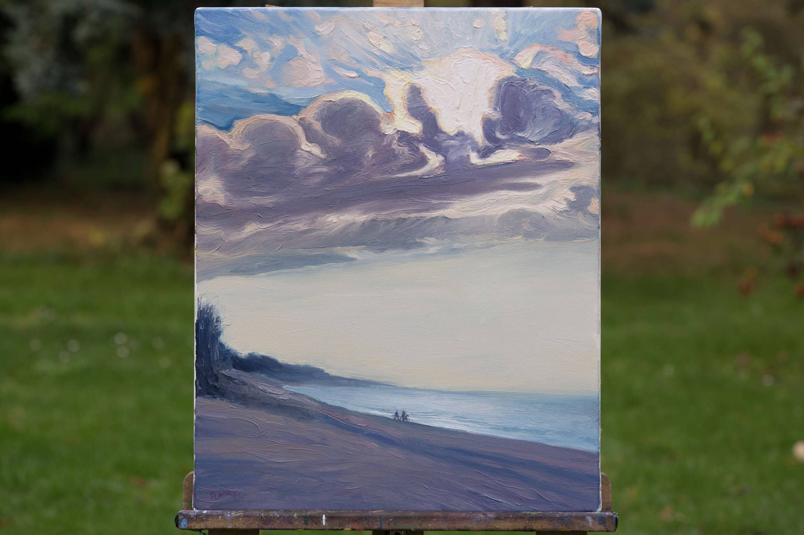 Jedno z wielu pięknych miejsc na polskim wybrzeżu Bałtyku. Podczas wędrówki z plecakiem wzdłuż wybrzeża. Przełom lata i jesieni, po południu. Obraz sygnowany i werniksowany.