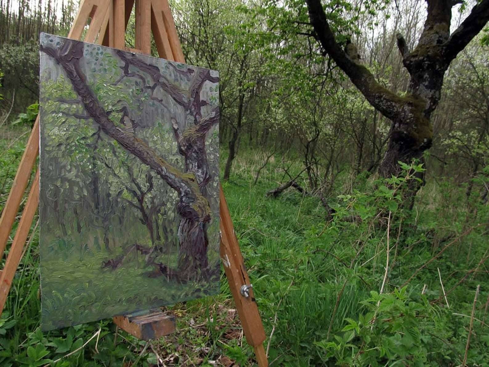 Obraz olejny namalowany w plenerze alla prima. Płyta HDF 3mm, 2019r. Sygnowany i werniksowany.