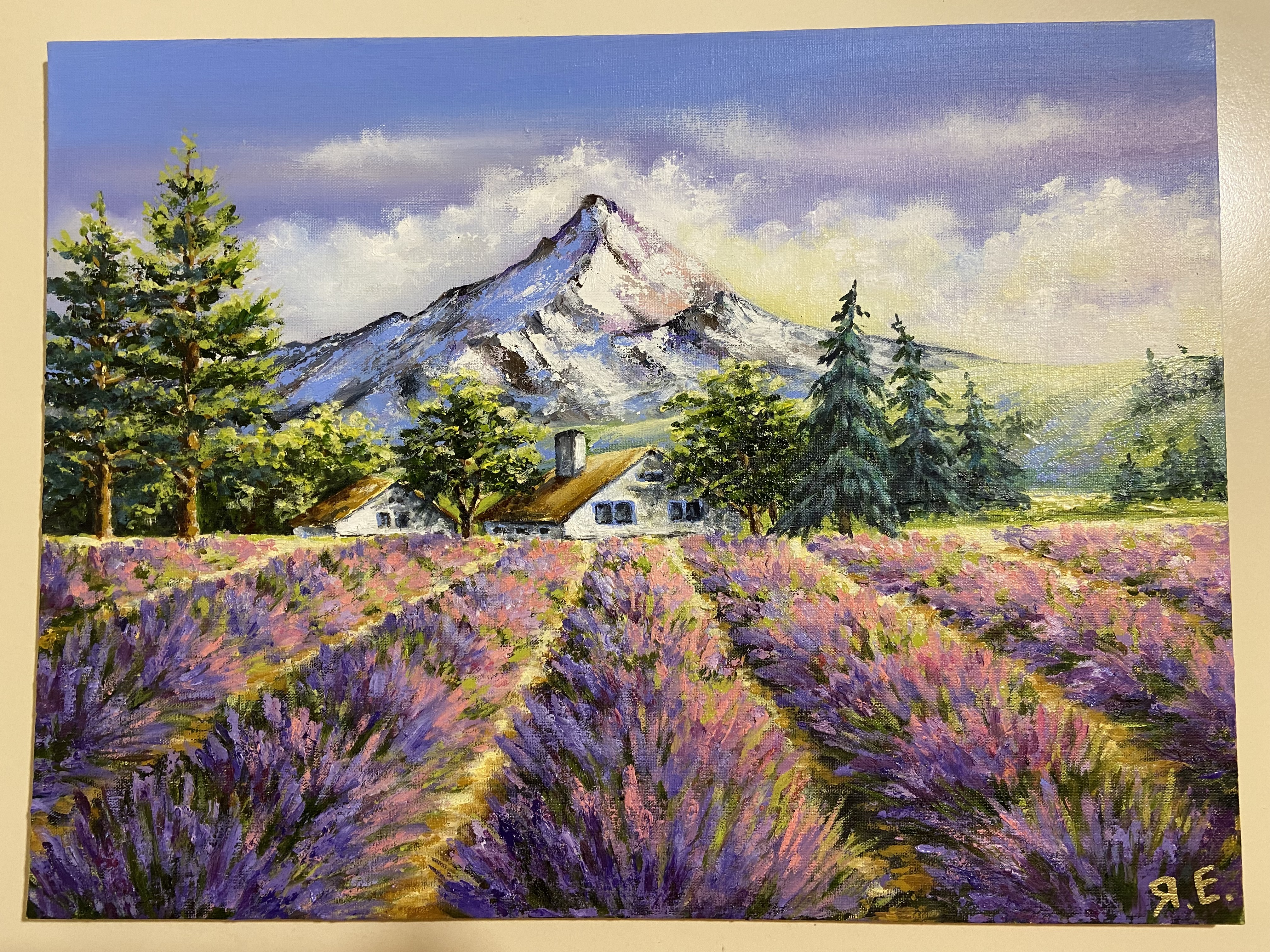 "Lavender Paradise", oil paintyng, Landscape with flowers