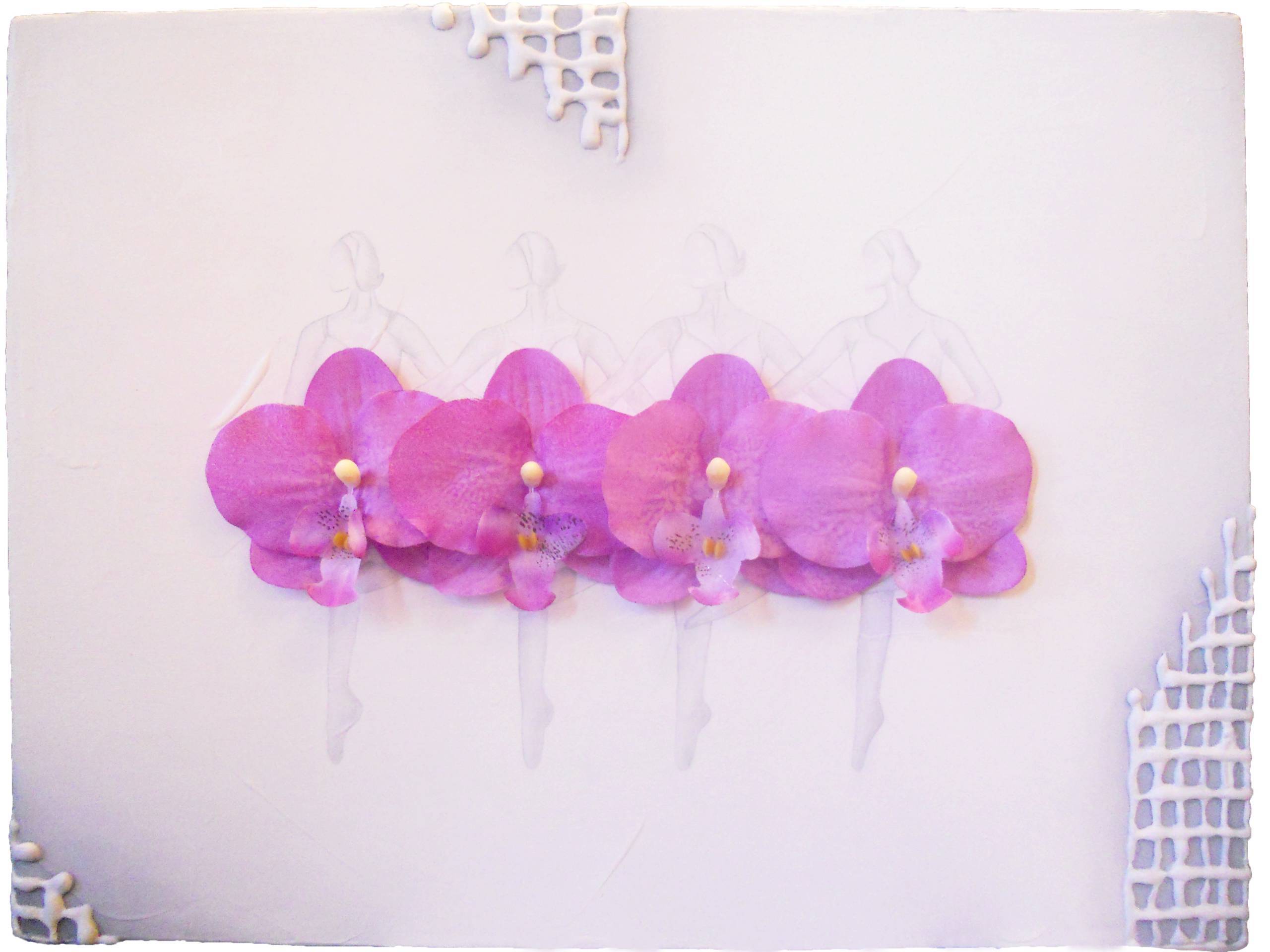 40x30 cm, oil on canvas on a stretcher, 3D simulation of the frame, artificial orchid flowers.