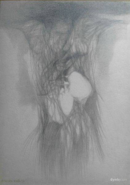 rysunek wykonany ołówkiem na kartonie