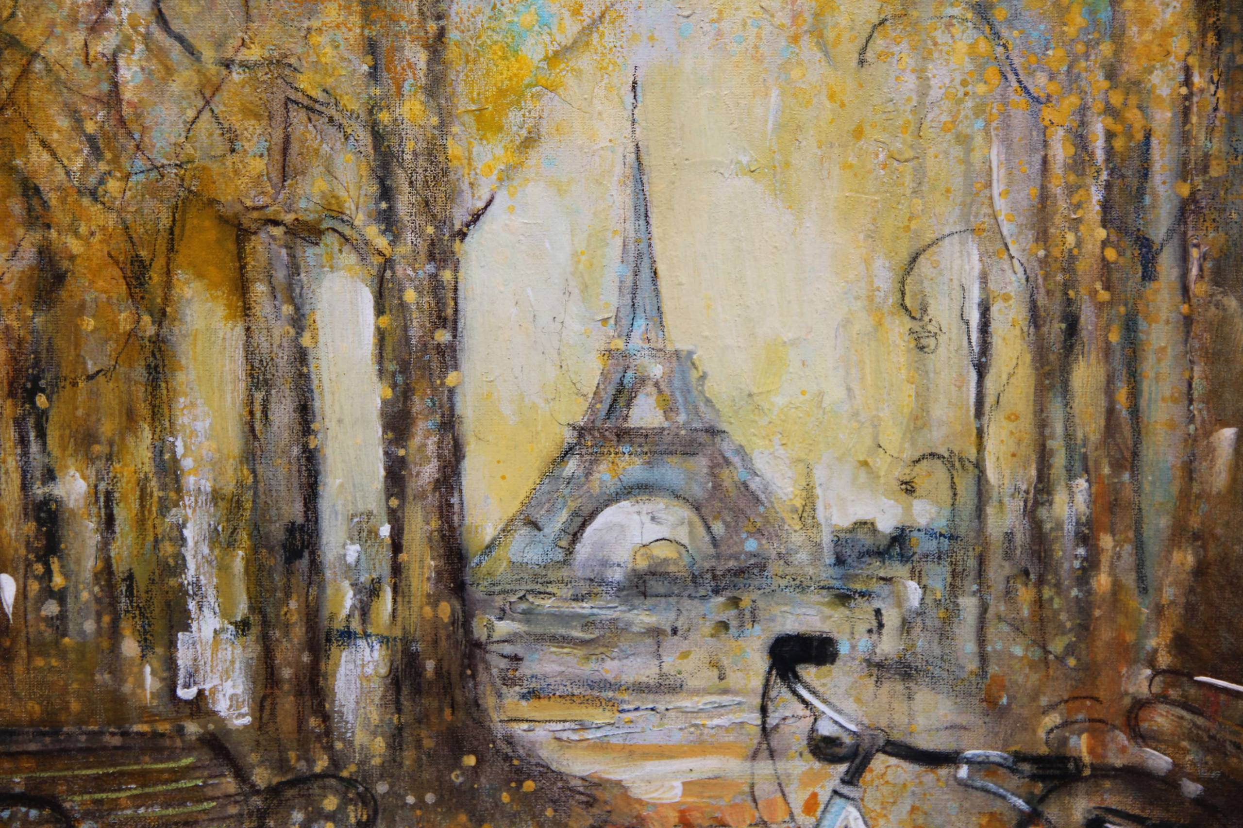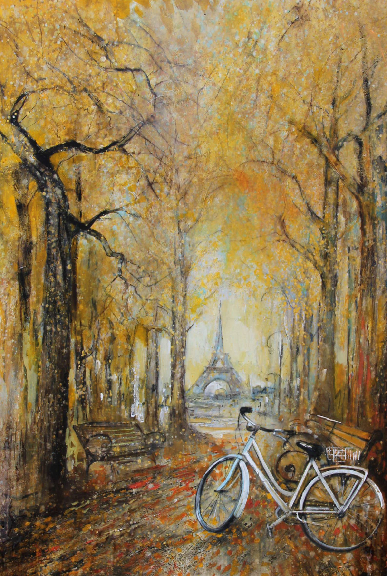 Jesienny pejzaż z wieżą Eiffla w tle.