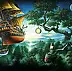 Obraz przykuwa wzrok intrygującą kompozycją, gdzie masywny żaglowiec zawisł w powietrzu. Jego złociste żagle odbijają światło księżyca, tworząc magiczną poświatę. Obok rośnie potężne drzewo, którego gałęzie skrywają tajemnicze, malutkie domki pomiędzy liśćmi. Czas odmierza duży zegar zawieszony na jednej z gałęzi. To pejzaż jak z bajkowego snu, pełen nostalgi i tajemnicy. Całość utrzymana w stylu surrealistycznym, łączy marzenie z rzeczywistością. Technika malarska artysty sprawia, że każdy detal przyciąga uwagę. Wyczuwalna jest tutaj pasja i precyzja, co wzmaga zainteresowanie. Niebo w głębokim granacie kontrastuje z zielenią drzew, nadając scenie głębię. Patrząc na to dzieło, można poczuć się jak odkrywca. Ciekawość rośnie. Czy to świat z dawnych opowieści? Nagle pojawia się myśl: "Chciałbym tam wejść i zobaczyć, co jest za drzewem!" Obraz wywołuje uśmiech i lekką tęsknotę za nieodkrytymi krainami. To jest sztuka, która inspiruje i zachwyca. Wow. Ale tam pięknie!