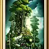Obraz przedstawia niezwykły, magiczny pejzaż, w którym pociąg wyłania się z gęstego lasu, a nad nim wznoszą się wysokie drzewa przypominające baśniowe wieże. Zielone odcienie liści kontrastują z nocnym, głębokim błękitem nieba, rozświetlonym bladym księżycem i migoczącymi gwiazdami. Kompozycja obrazu jest pełna detali: zegar wiszący nad torami symbolizuje przemijający czas, a ptak karmiony ciekawością przypomina dziecięcą zabawę w przygodę. Sposób, w jaki artysta bawi się światłem i cieniem, tworzy atmosferę tajemniczości i nostalgii, jak wieczór, kiedy świat staje się trochę magiczny. Styl obrazu jest realny, z nutą surrealizmu – jakby wyjęty z książki pełnej opowieści. Technika malarska przywodzi na myśl delikatne pociągnięcia pędzla, które nadają teksturę i głębię. Emocje? Fascynacja i marzenie, że można wejć w taki świat, gdzie wszystko jest możliwe. Myślę, że kiedy na to patrzę, czuję nutkę "wonder", jak wspomnienie z dzieciństwa, kiedy wszystko wydawało się być na wyciągnięcie ręki. Czy to niś niemożliwe? Tak czy owak, obraz przyciąga spojrzenie, zachęcając do zatrzymania się w biegu codzienności i zanurzenia we własne myśli.