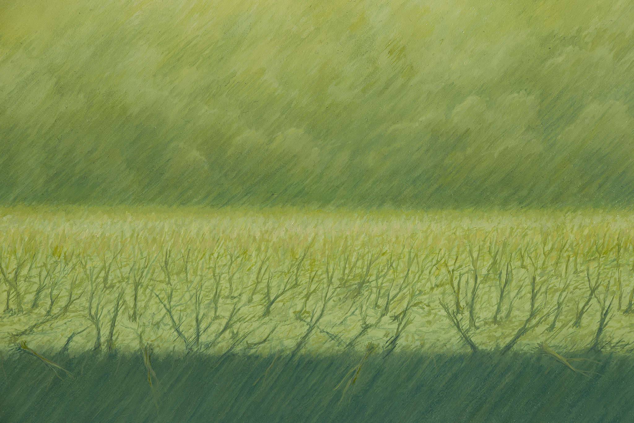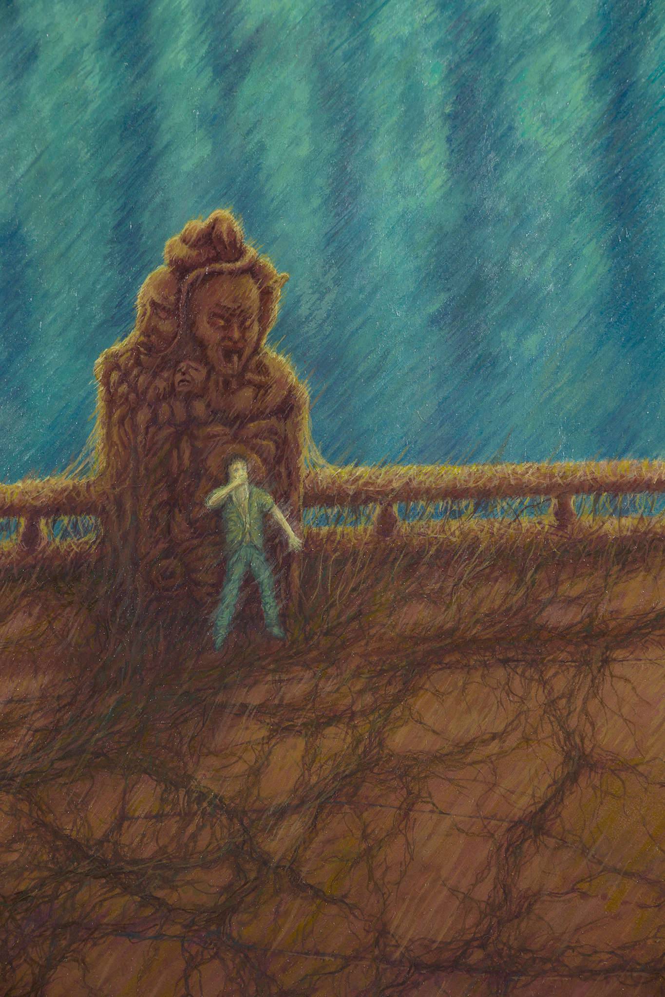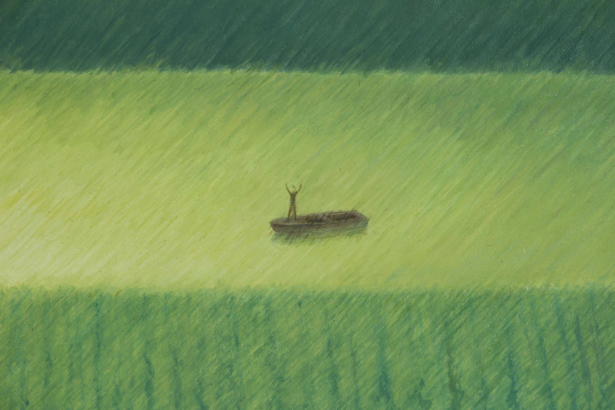 Na obrazie dominuje surrealistyczny krajobraz, w którym widać potężny wodospad o niemal prostopadłym kształcie. Kolory są stonowane, dominują odcienie błękitu i zieleni, co tworzy uspokajającą, a zarazem nieco tajemniczą atmosferę. Widać, że na wodospadzie stoi samotny człowiek na łodzi, co dodaje scenie dramatyzmu. Czy ta osoba nie boi się takiej przepaści? Kompozycja obrazu jest precyzyjna, z wyraźnym podziałem pomiędzy spokojem tafli wody a dynamiką wodospadu. Artysta użył techniki impresjonistycznej, z lekkimi, niemal eterycznymi pociągnięciami pędzla. Całość emanuje spokojem, ale i melancholią. Patrząc na ten obraz, czuję się zarówno zafascynowany, jak i zaniepokojony. Czy ta scena jest metaforą życiowych wyborów, gdzie balansujemy na krawędzi? Słowo "overwhelming" idealnie pasuje, by opisać wrażenie, jakie budzi ten widok. Dziecko powiedziałoby, że wygląda to jak wielka zjeżdżalnia. Obraz ten zmusza do refleksji nad siłą natury i naszą kruchością wobec niej.