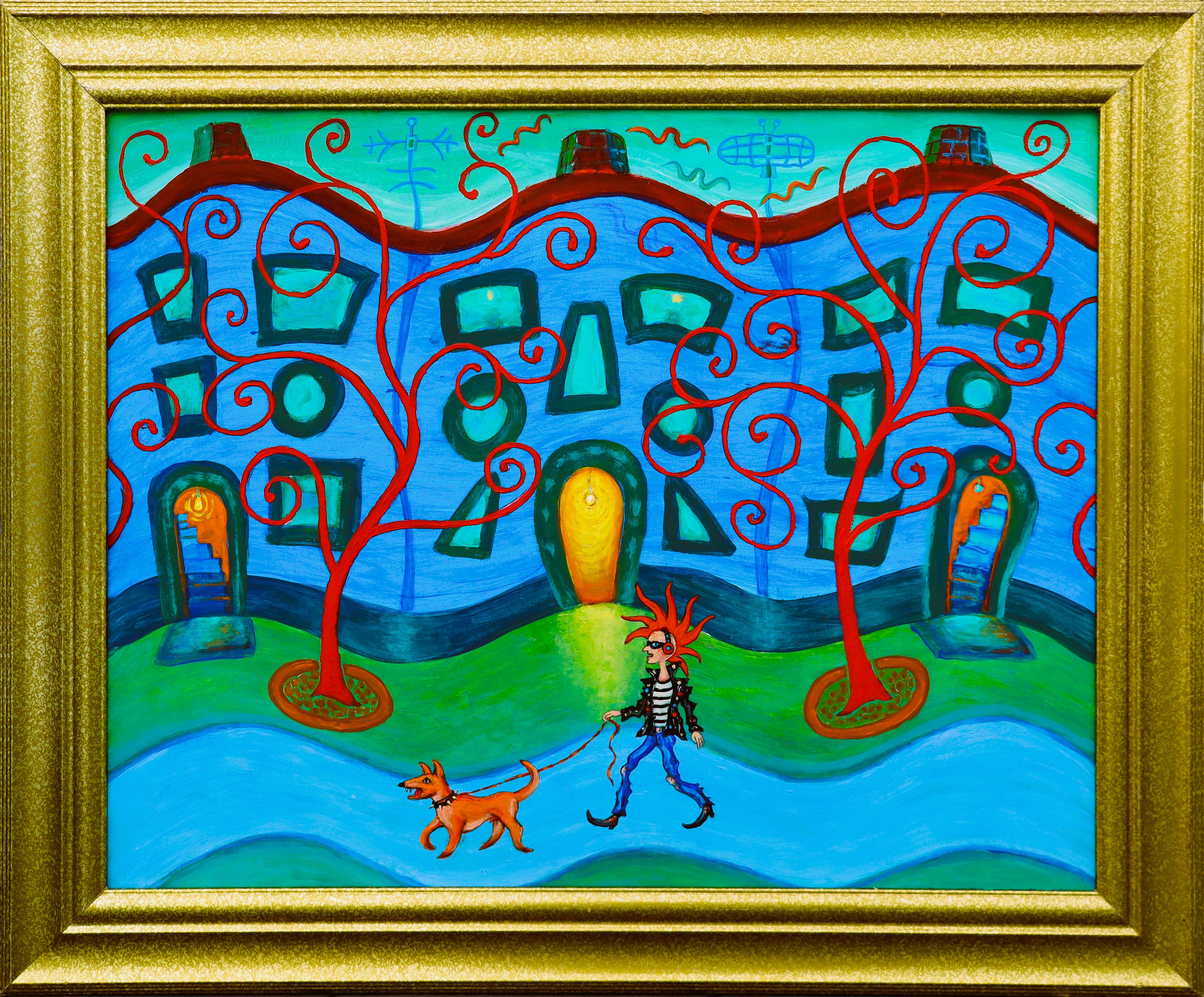 Miasto. Kretą ścieżką przez park idzie jakiś koleś, punk. Na uszach ma zapewne dobrą muzę (Joy Division, Bauhaus, PIL itp.) na smyczy prowadzi psa. Kręte drzewa zdają się odzwierciedlać ich radość i odmienność pośród szarości i monotonii życia codziennego. Są to jakby przekoloryzowane lata 80-te. W tle bloki mieszkalne ze światłami w otwartych bramach, a w oknach majaczące postacie. Na dachach domów kominy, i anteny odbiorników telewizyjnych biorących namiary na dziennik telewizyjny i podobne wieczorne programy. On jest ponad tym wszystkim. Propaganda go nie rusza. Idzie dalej swoją drogą, wolny i swobodny ... trochę jak te ptaki nad jego głową.