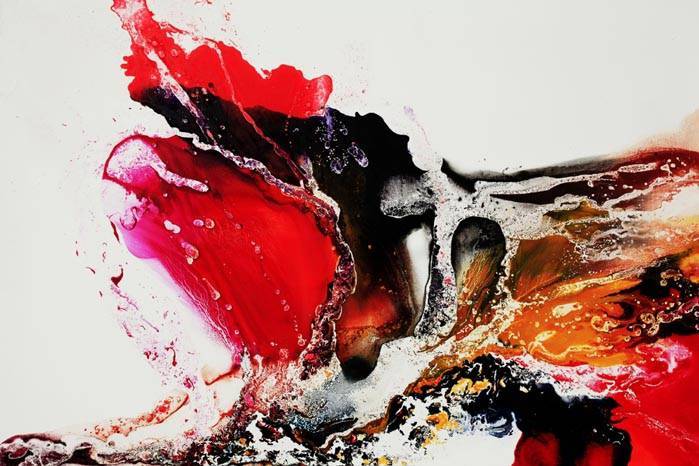 Na obrazie widzimy dynamiczne połączenie żywych kolorów, które przypomina eksplozję emocji. Dominują intensywne czerwienie, skontrastowane z głęboką czernią, które twórczo przechodzą w ciepłe odcienie pomarańczu i żółci. Kompozycja jest dzika i nieokiełznana, jakby ktoś rozlał farbę bez troski o to, gdzie upadnie, tworząc chaotyczną, ale fascynującą wizję. W powietrzu unosi się atmosfera energii i pasji, jakby obraz żył własnym rytmem. Styl artystyczny przypomina abstrakcyjny ekspresjonizm, gdzie technika może obejmować dynamiczne pociągnięcia pędzlem, mżenie barw czy splatter. Obraz zdaje się mówić „feel it!” wywołując u odbiorcy różne reakcje: fascynację, zachwyt czy nawet niepokój. Dziecko mogłoby powiedzieć: „Wygląda jak ogniste niebo!” To sztuka, która zachęca do refleksji nad chaosem i pięknem świata. Obraz wywołuje we mnie uczucie podekscytowania, jakby artysta oddał cząstkę swojej duszy na płótnie. Zwraca uwagę nie tylko bogactwem form, ale też emocjonalną głębią, pokazując, że czasem najbardziej przypadkowe formy mogą przekazać najsilniejsze emocje. Przeplatając formalne i swobodne akcenty, malarz tworzy przestrzeń dla różnorodnych interpretacji. To jak patrzeć na światło, które nie chce być zdefiniowane.