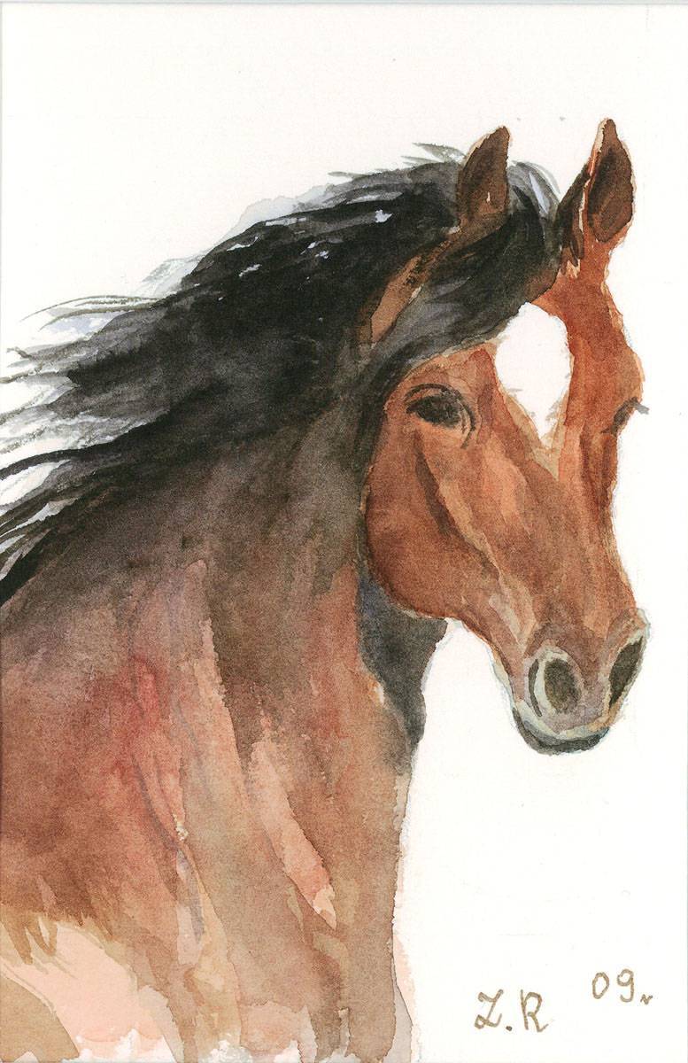 Mała akwarelka- mój pierwszy koń w akwareli.