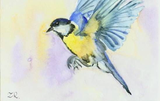 Miniatura w passepartou 18x24 cm pasująca do tryptyku małe ptaki.