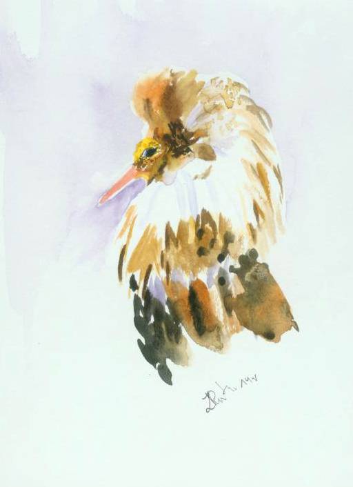 Kolejna akwarelka z serii "Ptaki Biebrzy" - bataliony.