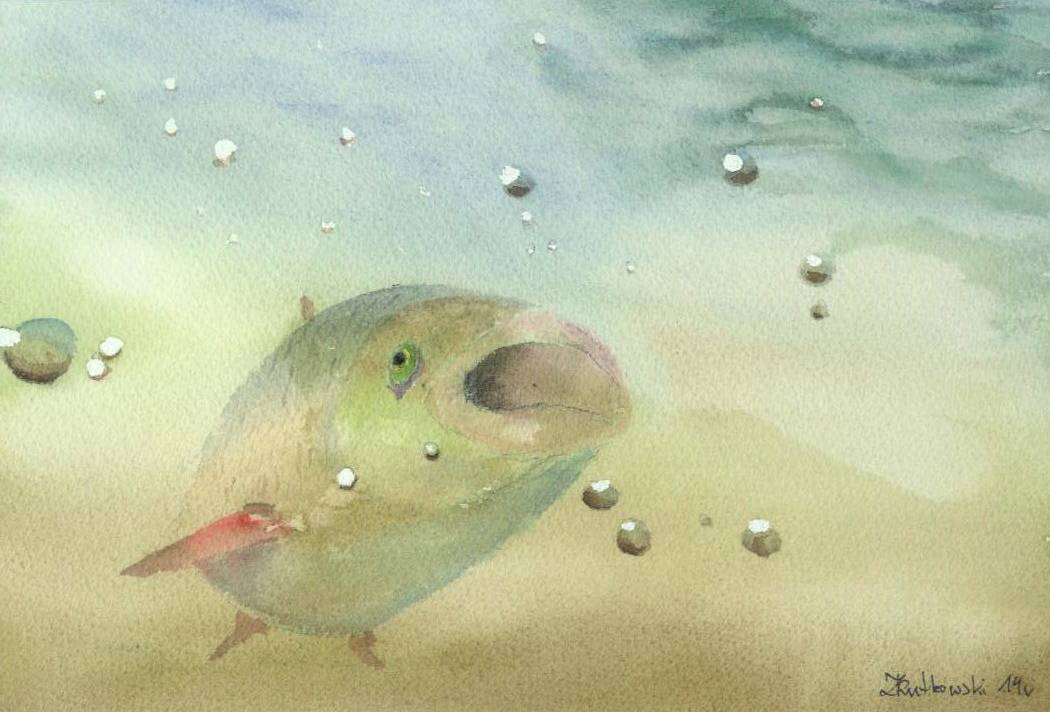 Ryba z Biebrzy malowana na podstawie zdjęcia zrobionego przez płetwonurka Piotra.
