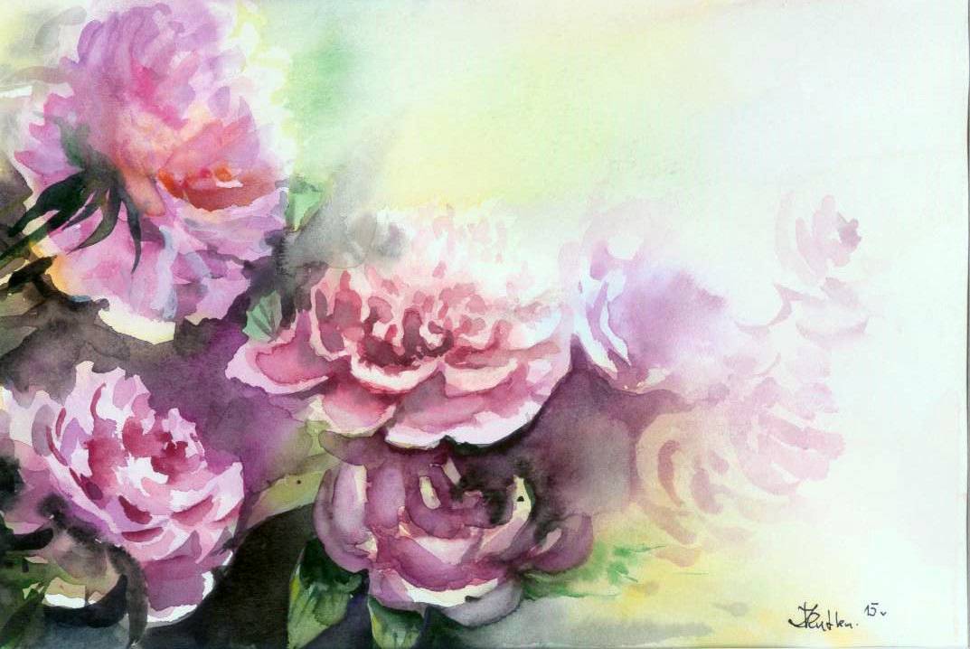 Akwarela z serii "Mój ogród" w passpartu 30 x 40 cm.