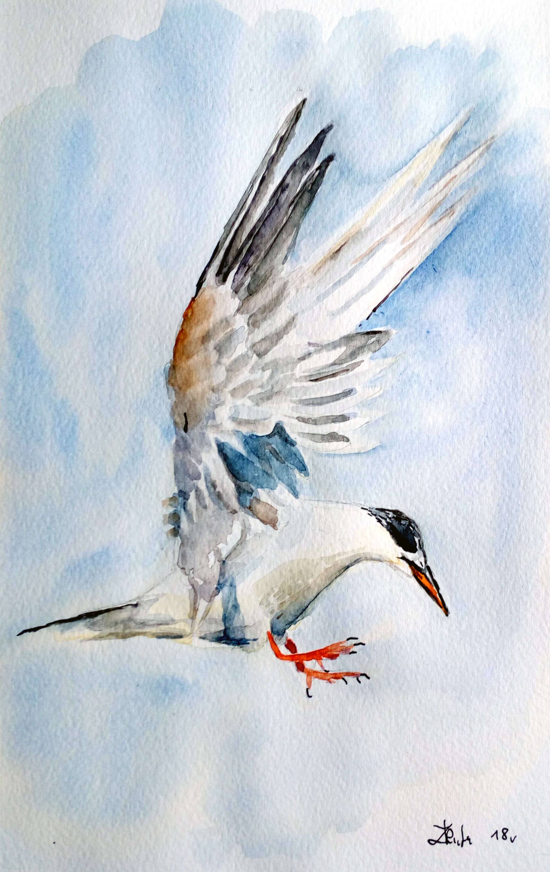 Akwarela z serii ptaków na czerpanym papierze 300g malowana b.dobrymi farbami zapewniająca trwałość kolorów.