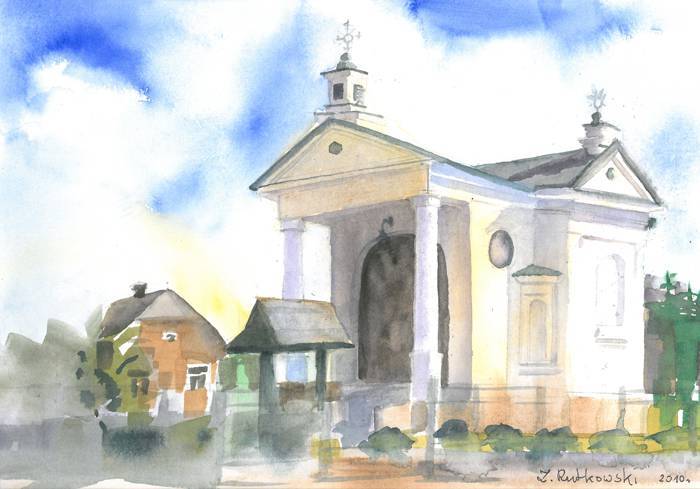 Początkowo była drewniana ale w II Wojnę Światową została spalona.Odbudowano już jako murowaną.