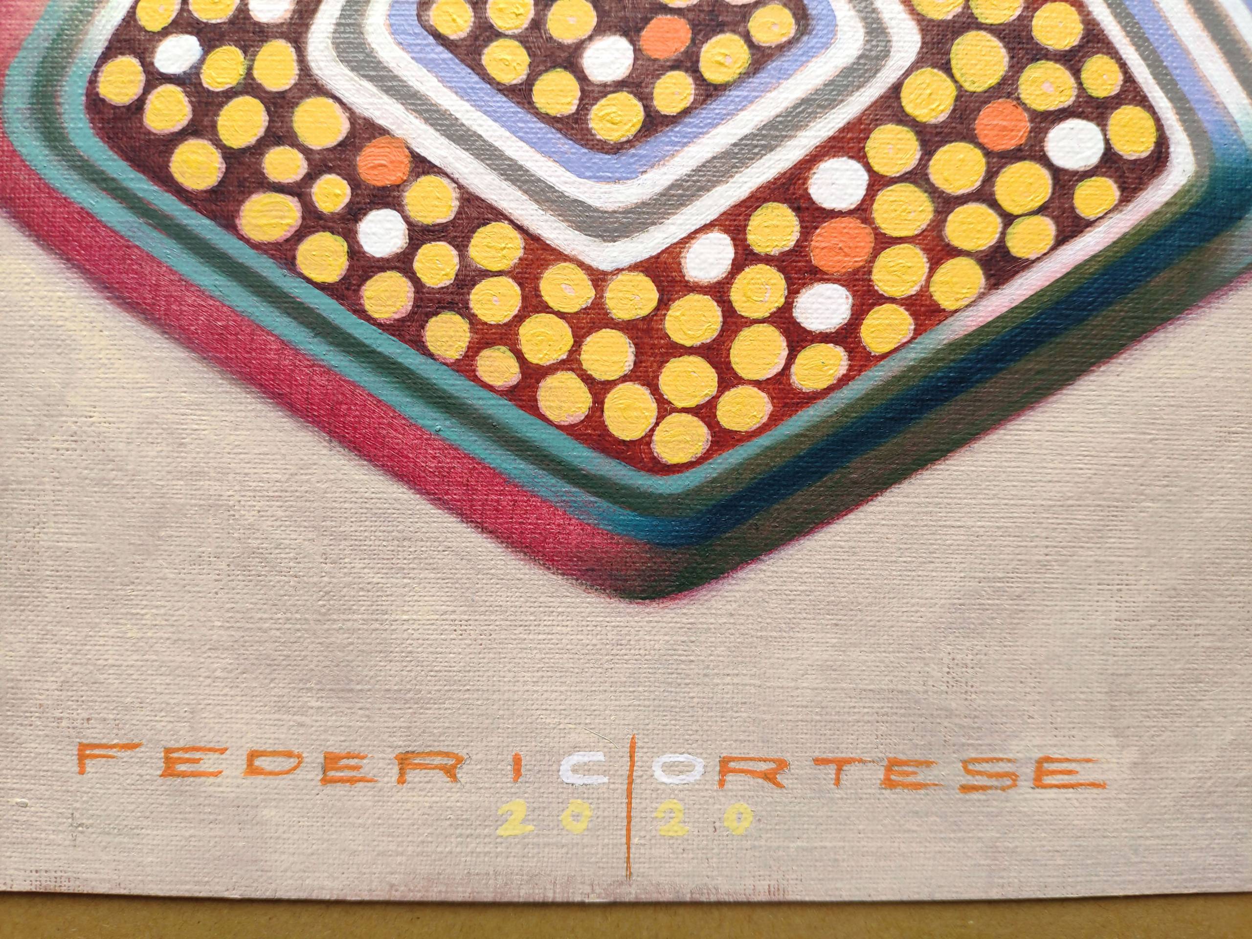 An original piece from the series “Rorschach”, oil on thick paper, 65 x 50 cm, 2020. The Swiss psychiatrist Hermann Rorschach, invented the famous inkblots, to put into practice a therapeutic form in which a patient, observing these apparently indefinite forms, could create associations or interpretations, from which the analysis of the psychological disorders can begin. Often my work is criticized because it is too defined, too precise, too detailed. This accuracy would take away any possible action to the imagination of the observer. This reasoning has always made me smile a little, and each time reminds me of the Rorschach blots, which in reality were not indefinite, but on the contrary sharp and precise, and allowed to generate associations only because these associations are already inside the mind of the patient, or in general, of the observer. The interpretation of a work is not made possible by its indeterminacy. It depends only on the culture of the viewer, on the books he has read, on the films he has seen, on the paintings he has observed, and this generates his ability to see cross-references between things.