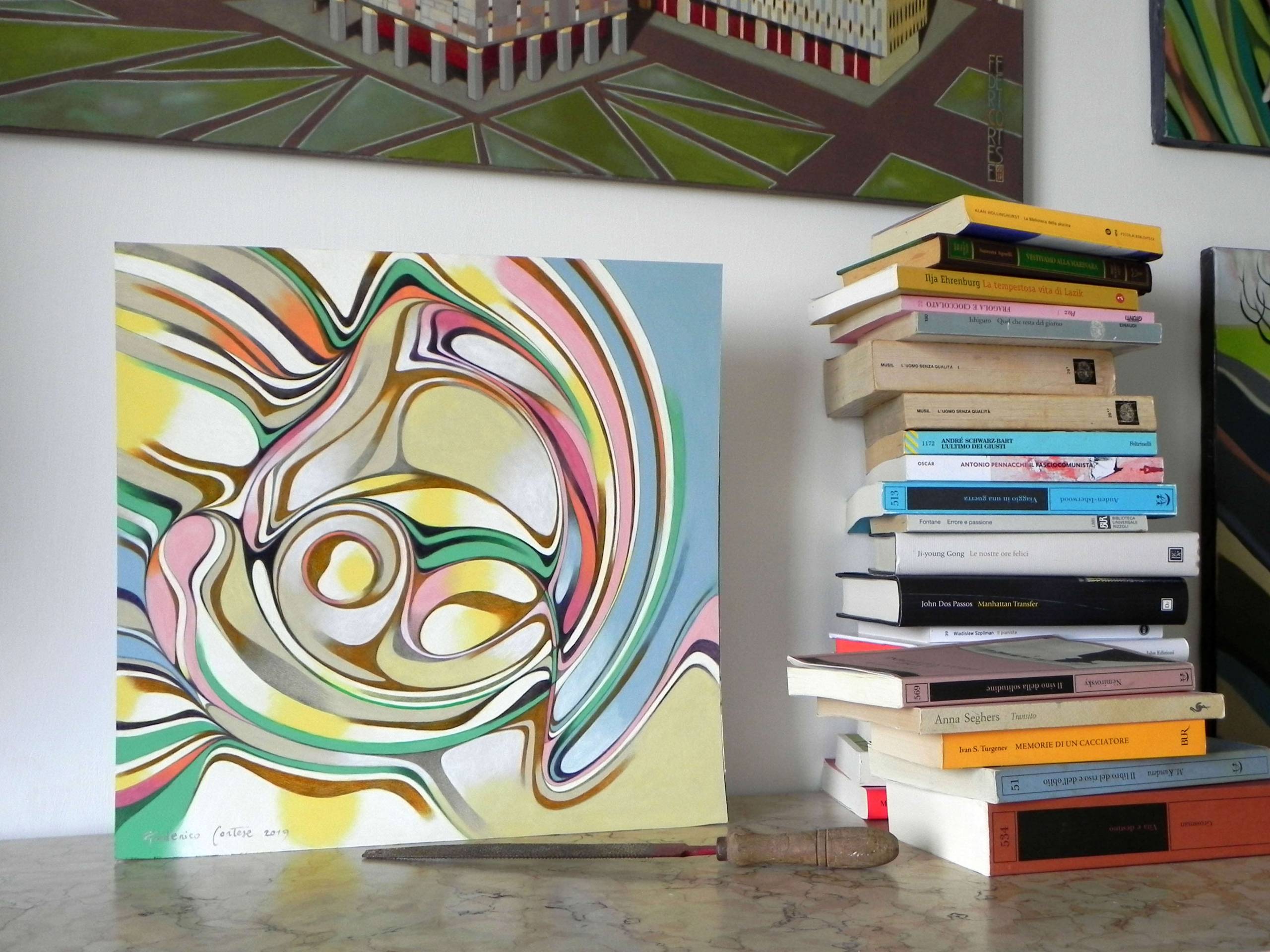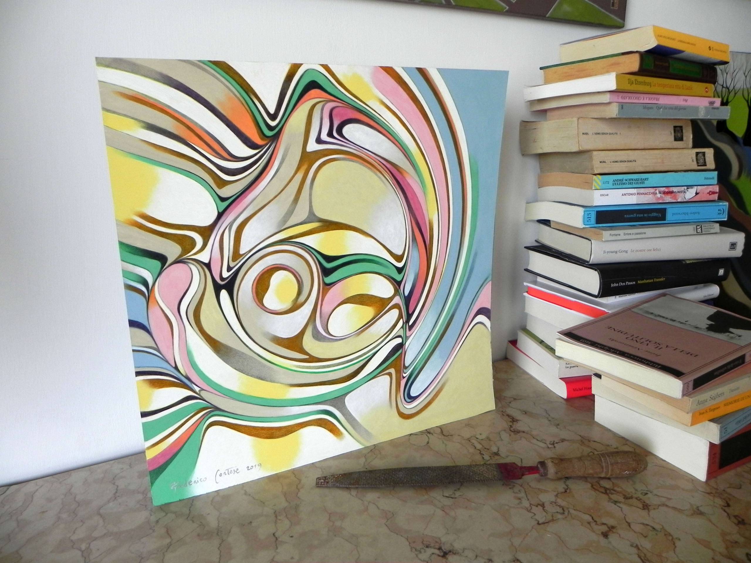 Abstract composition. Oil on thick paper, 40 x 40 cm, 2019.