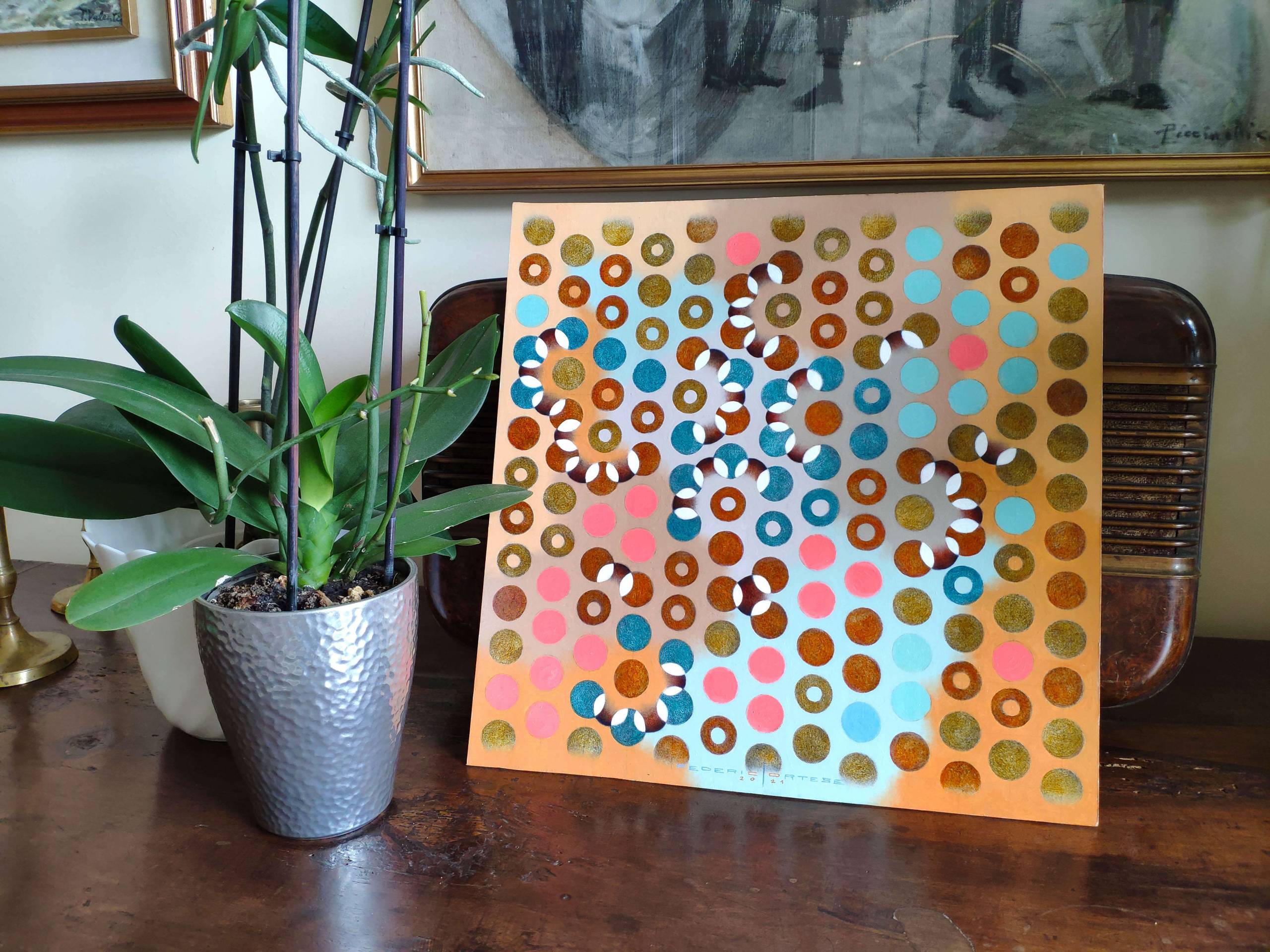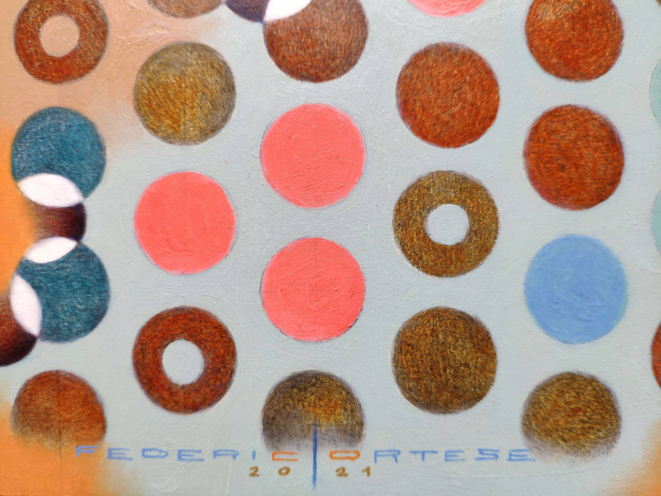 From the series “Chromatic”, oil on board (thickness of the panel 0.2 cm). Artists are attached to a particular theme or compositional scheme often, till the point that it almost becomes an obsession, their personal and unmistakable signature. On a closer inspection, what counts in these schemes is the possibility, or possibilities, of generating variants. I believe that the artist is precisely attracted to the investigation of these variants, and the exploration of the limit to which one can go in their alteration. And if there are many variables involved in this game, the possibilities of creating variations become almost infinite. I believe that unconsciously, this creative process is also gratifying because it allows us to invent an illusory order, where the chaos of reality can create confusion. One could almost speak of a "collector's syndrome", except that in this case, the artist, not only, as in a collection of butterflies or stamps, always searches for new specimens and this research is never satisfied, but he even creates "specimens” by himself!