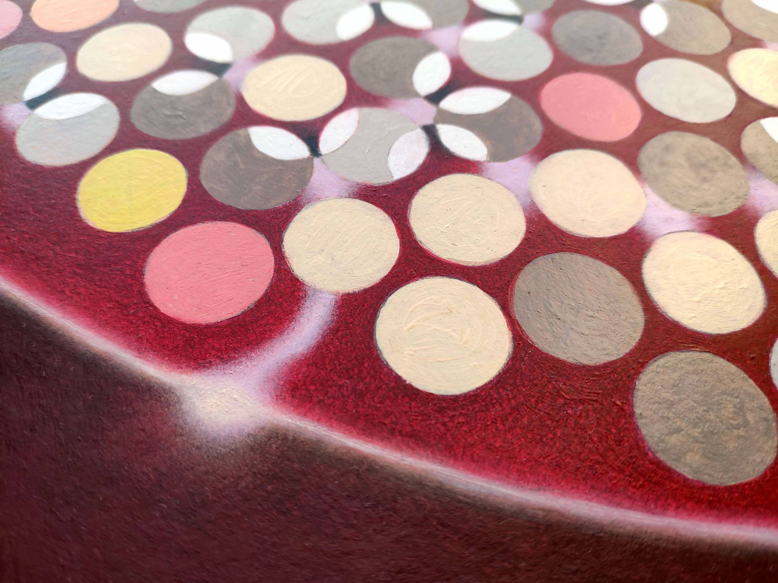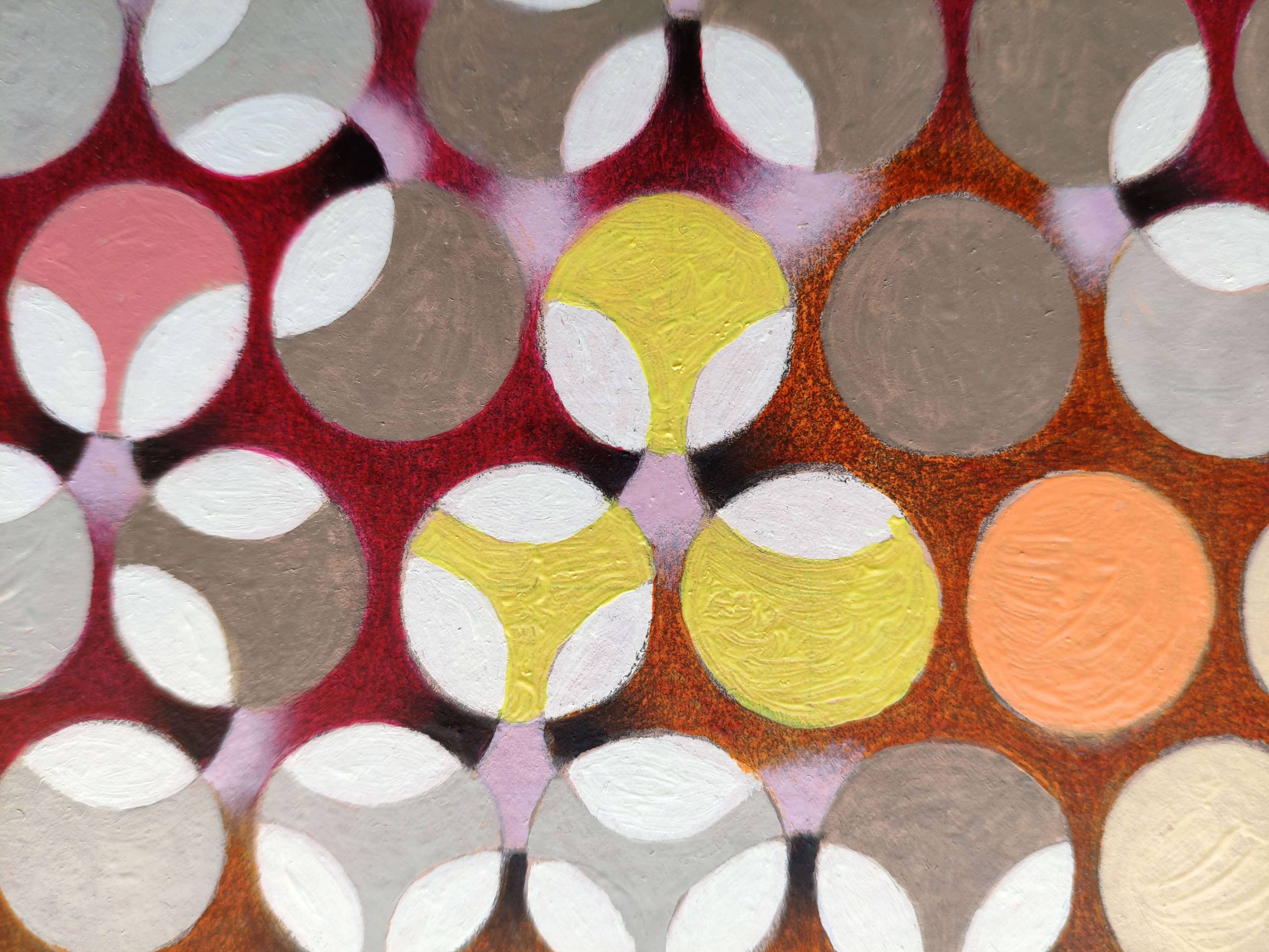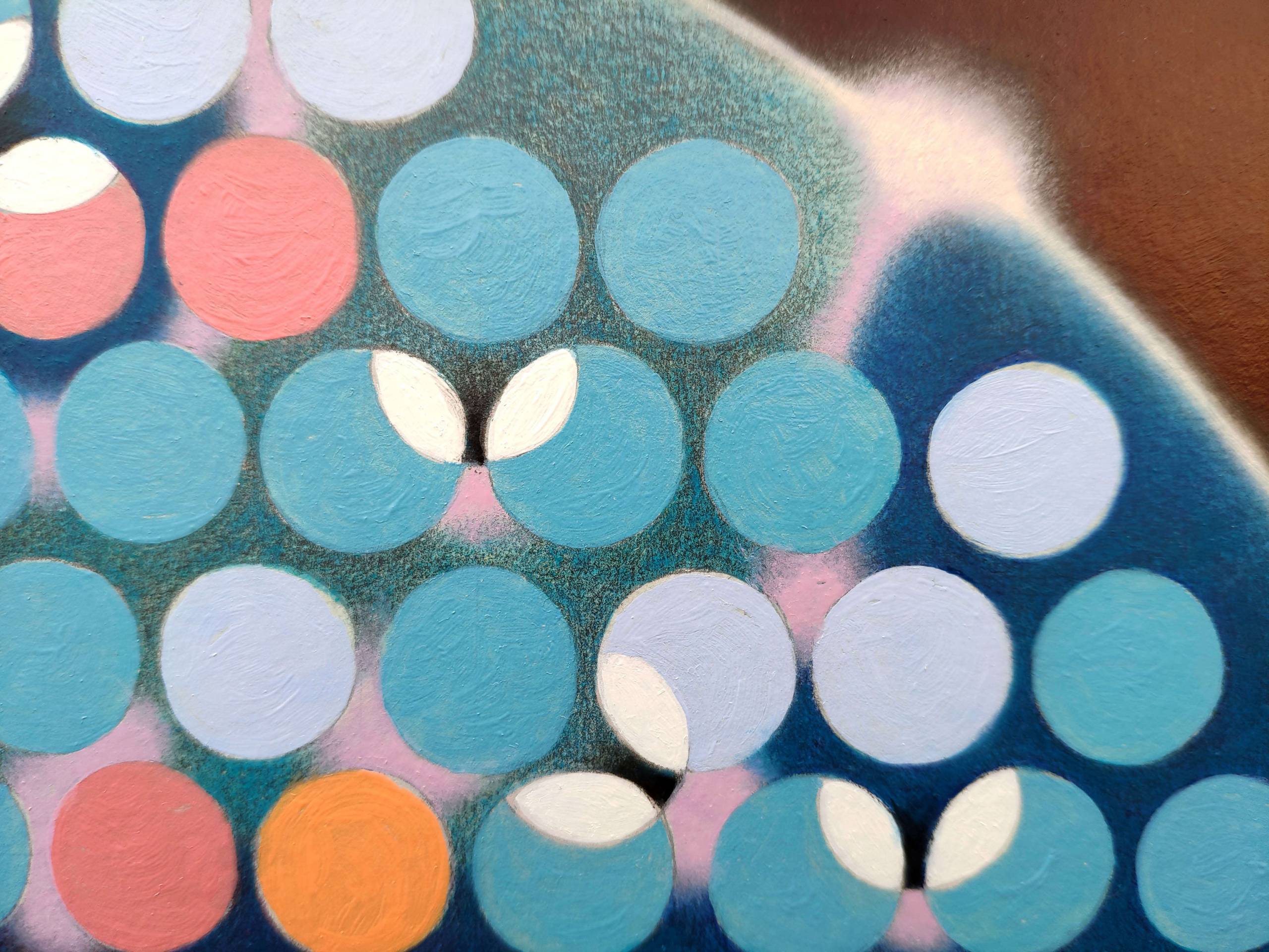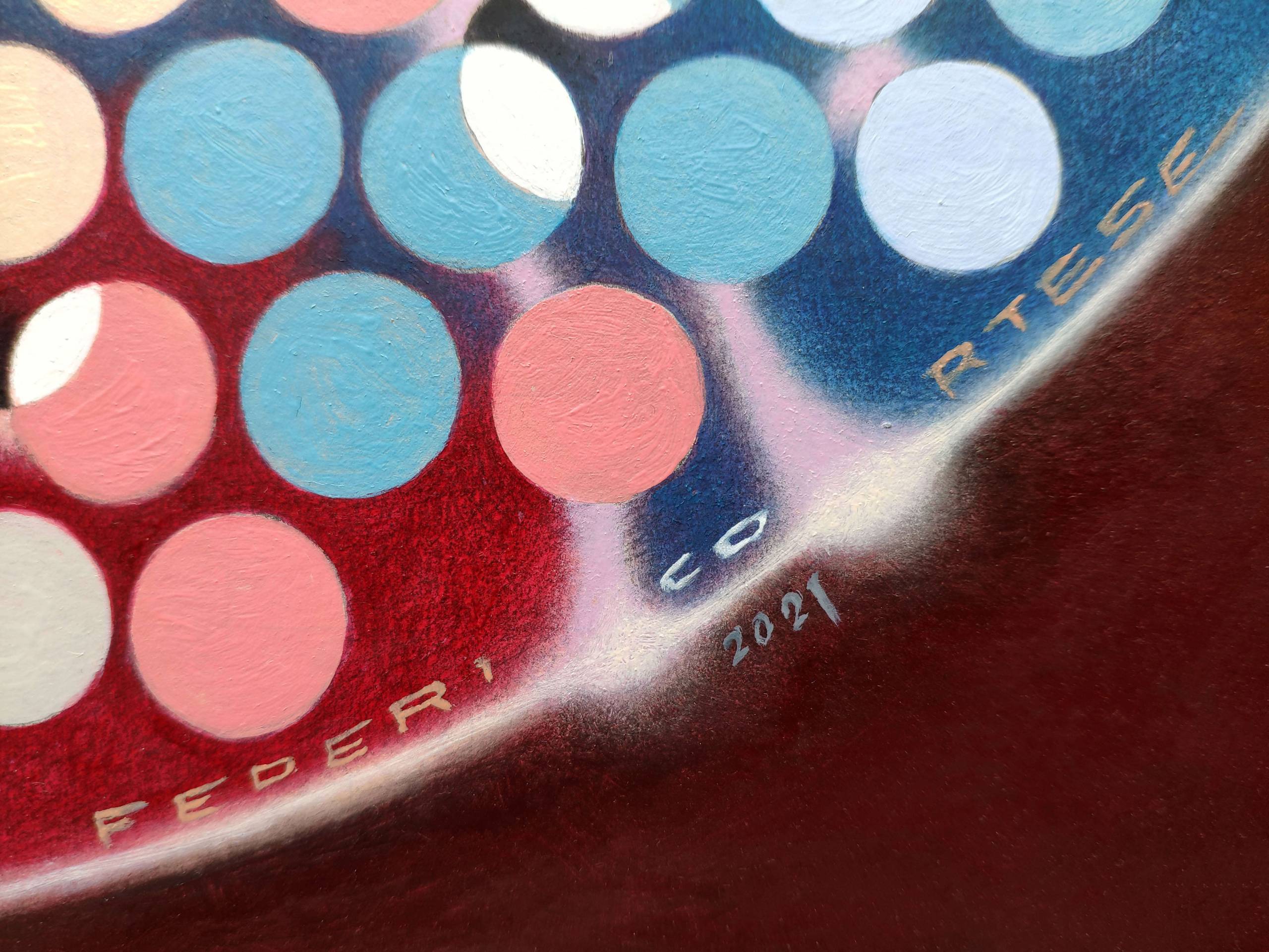 An original piece from the series “Chromatic”, oil on thick paper. 2021. Artists are attached to a particular theme or compositional scheme often, till the point that it almost becomes an obsession, their personal and unmistakable signature. On a closer inspection, what counts in these schemes is the possibility, or possibilities, of generating variants. I believe that the artist is precisely attracted to the investigation of these variants, and the exploration of the limit to which one can go in their alteration. And if there are many variables involved in this game, the possibilities of creating variations become almost infinite. I believe that unconsciously, this creative process is also gratifying because it allows us to invent an illusory order, where the chaos of reality can create confusion. One could almost speak of a "collector's syndrome", except that in this case, the artist, not only, as in a collection of butterflies or stamps, always searches for new specimens and this research is never satisfied, but he even creates "specimens” by himself!