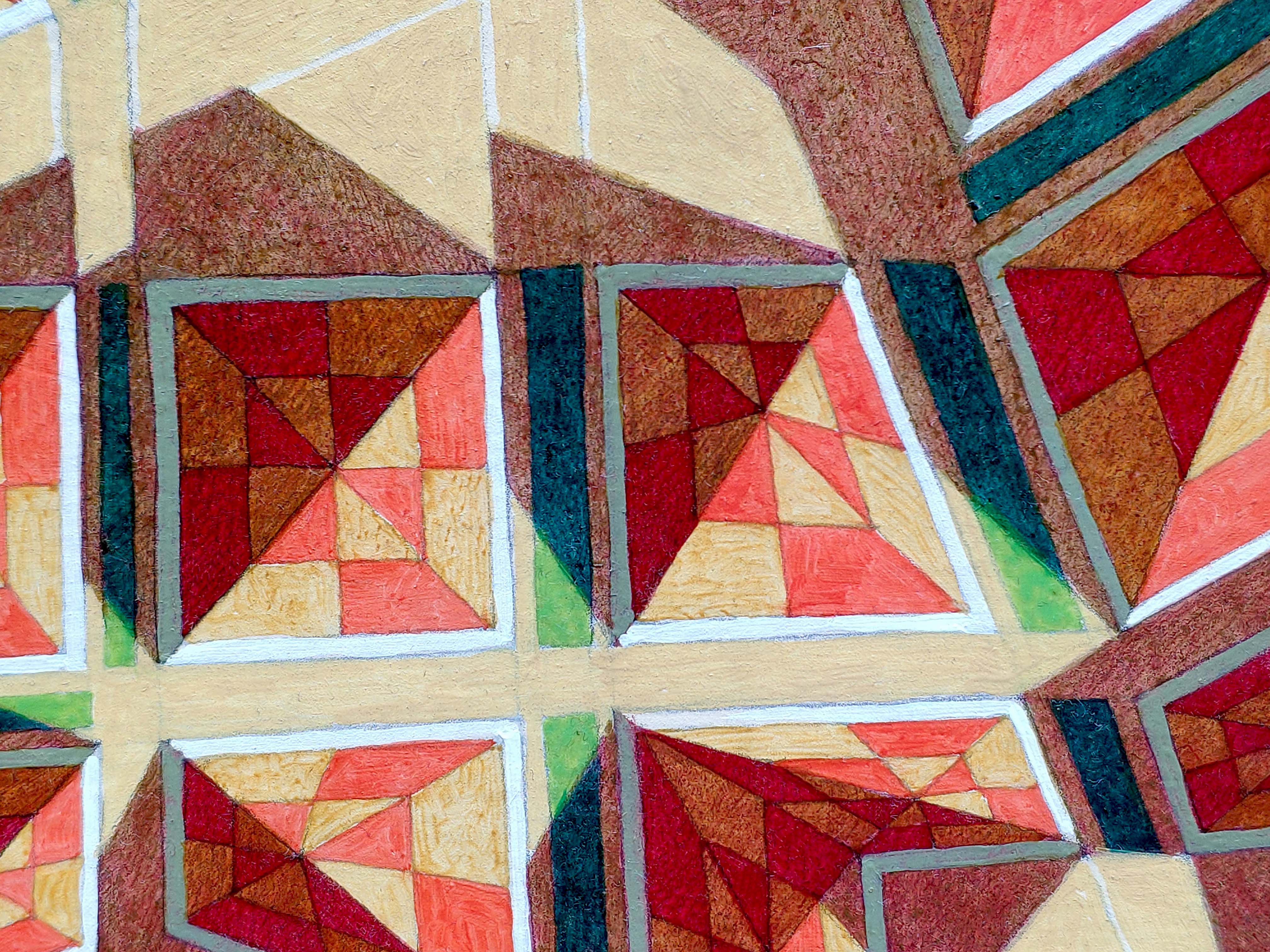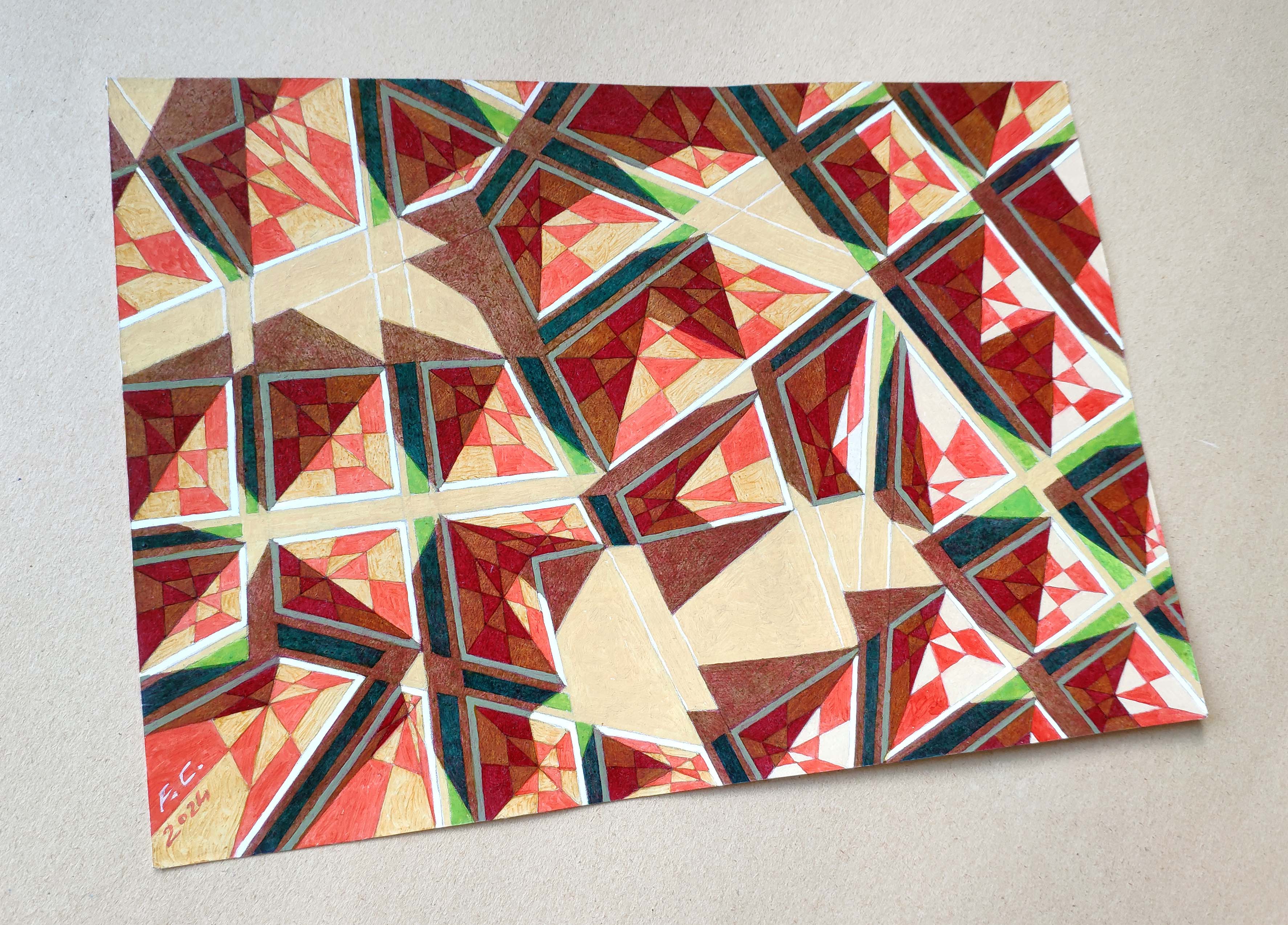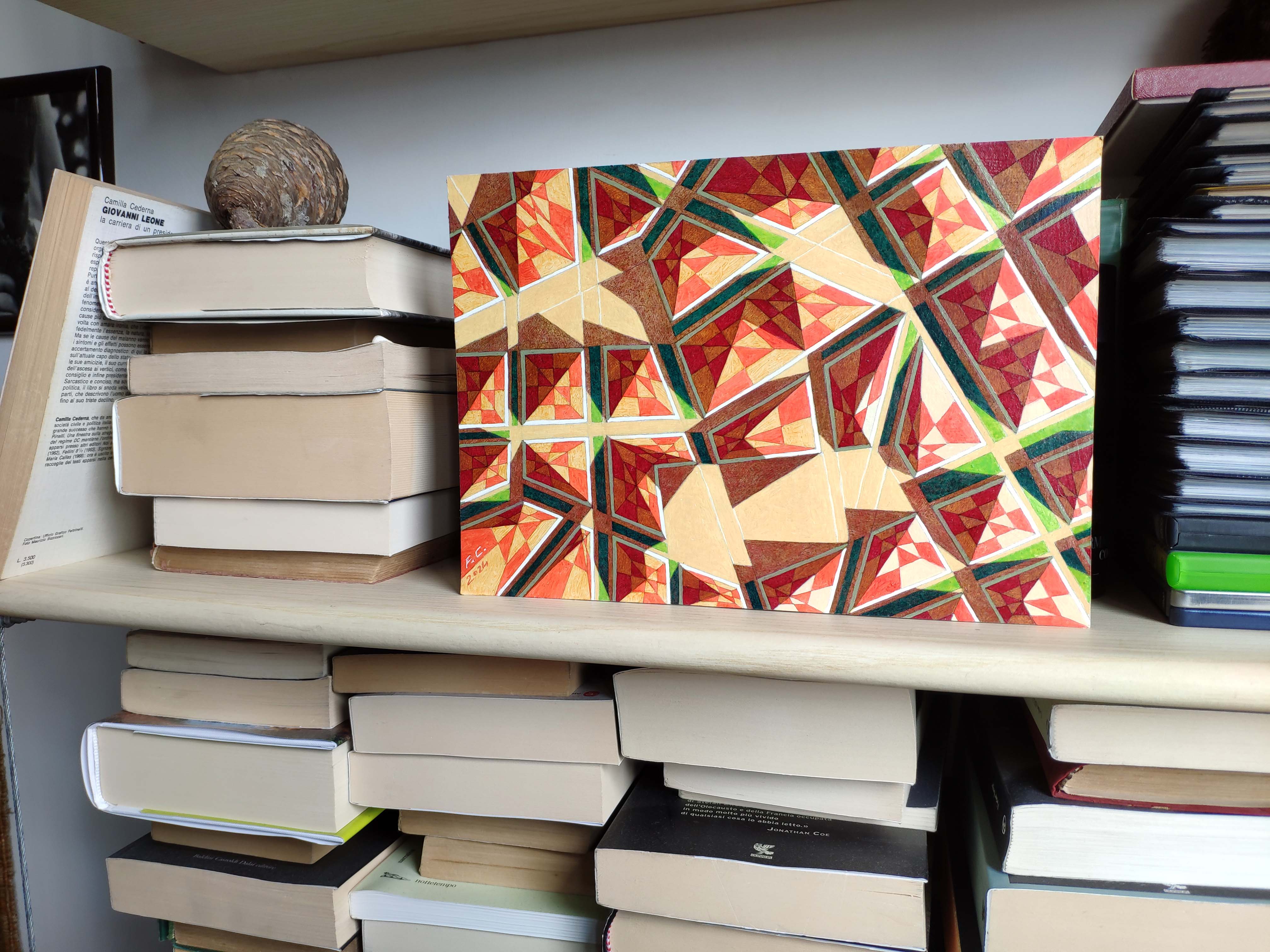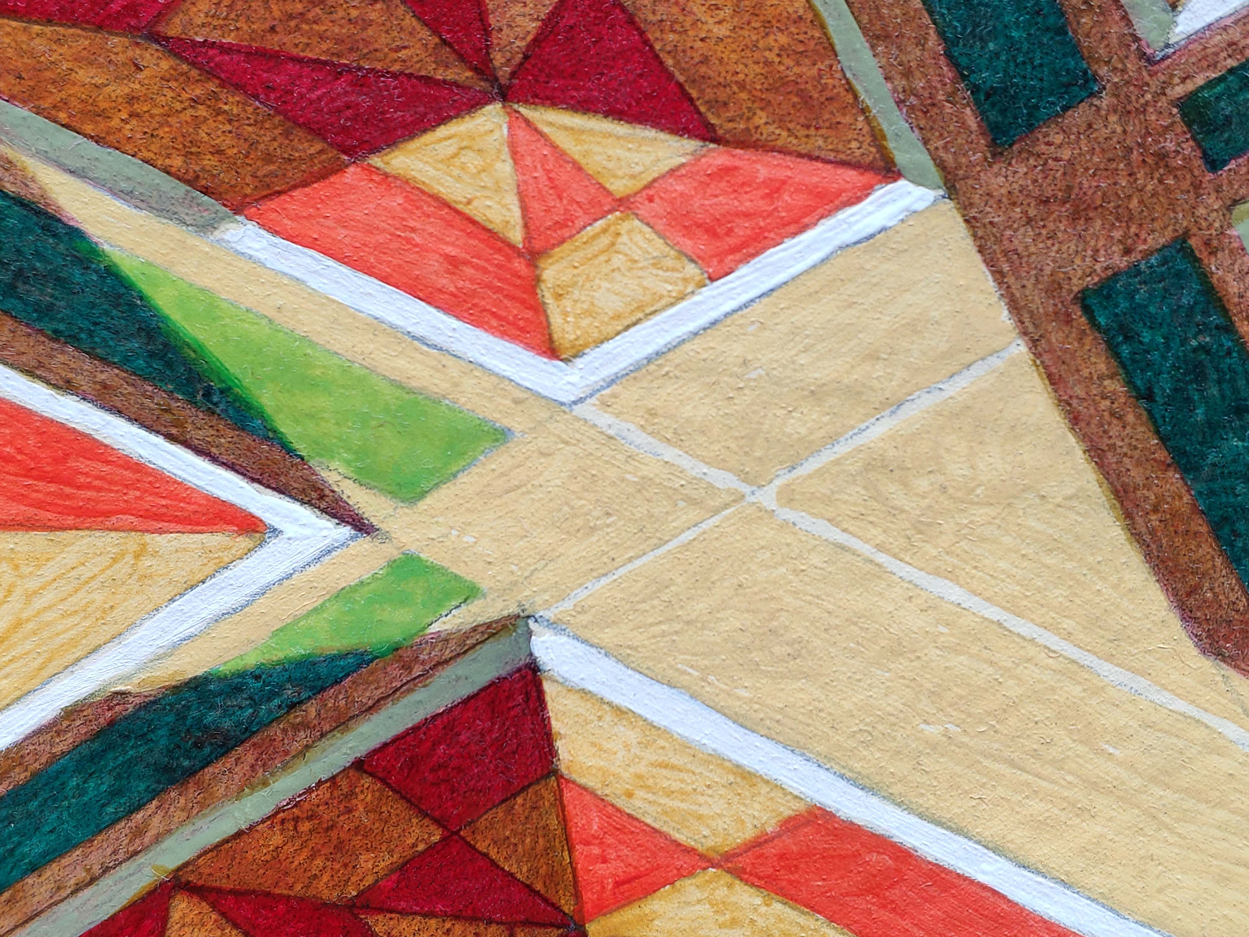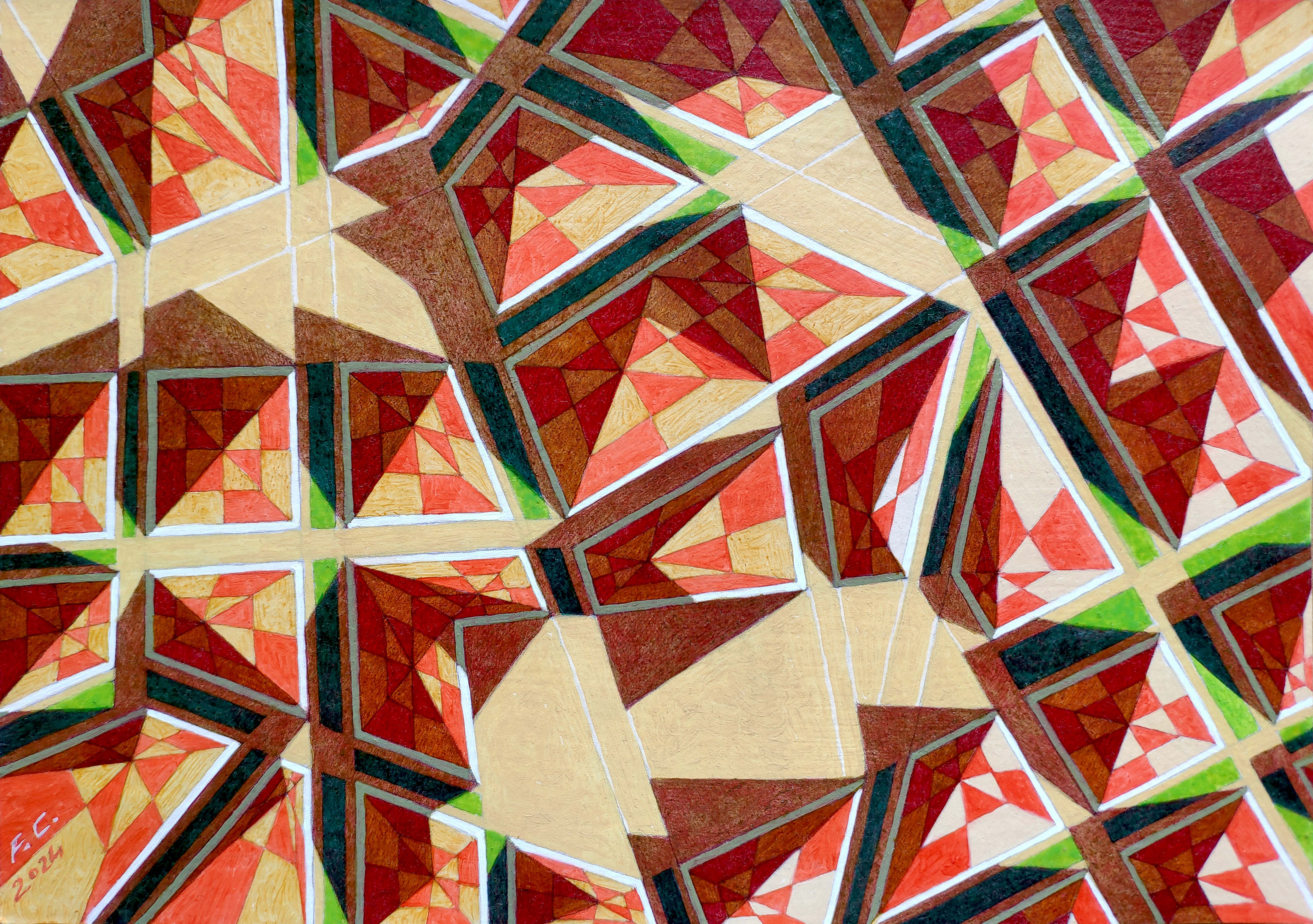 An original piece from the series “Code”, oil on thick paper, 27 x 19 cm, 2024. A map is an imprint, a sign of man in the landscape. An alien intelligence, observing our cities from the great distances of space, could interpret them as the characters of an alphabet, sort of messages, a code of signs, each one different from the other, each with its own meaning and its own syntax. This hypothetical alien presence may not even realize that these cities have a purpose and a function, which are the product of the way we have adapted to live on this planet, but it could engage in an attempt to interpret this unknown language, identifying the alphabet and associating to each character a precise meaning. Will we still be able to understand and share these new meanings, or will they have lost any sense for us?
