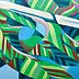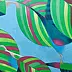 An original piece from the series “Under the shadow of a tree”, oil on thick paper, 2022. Let's imagine that we are lying down in a meadow on a bright spring day. At the foot of a tree the light filters through the leaves. Among the flashes that obscure the view and make us squint, the outlines of the branches, fronds and green blend and mix with the blue of the sky. The leaves crossed by the light are almost transparent, but their shadow falls upon us and protects us, instilling a sense of peace.