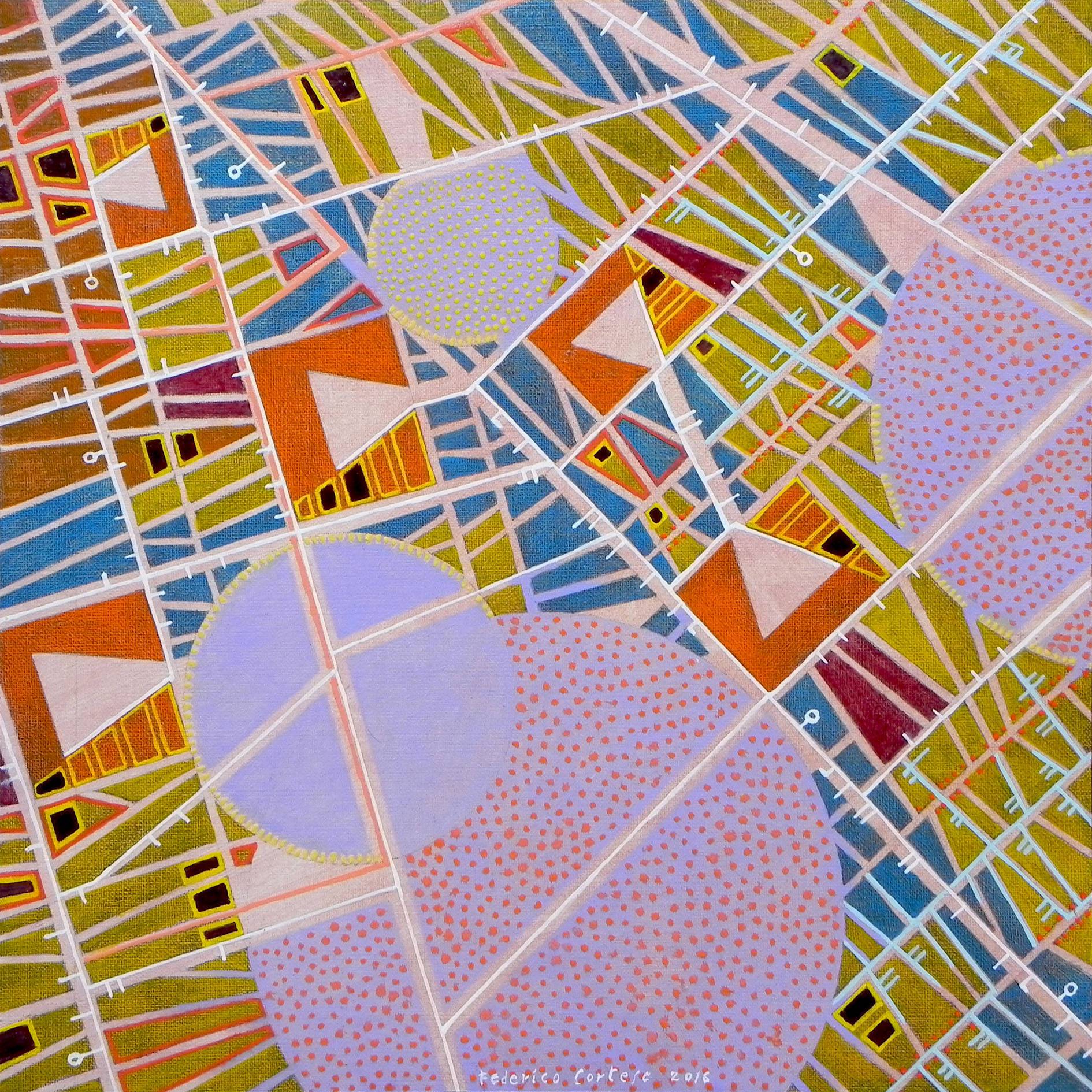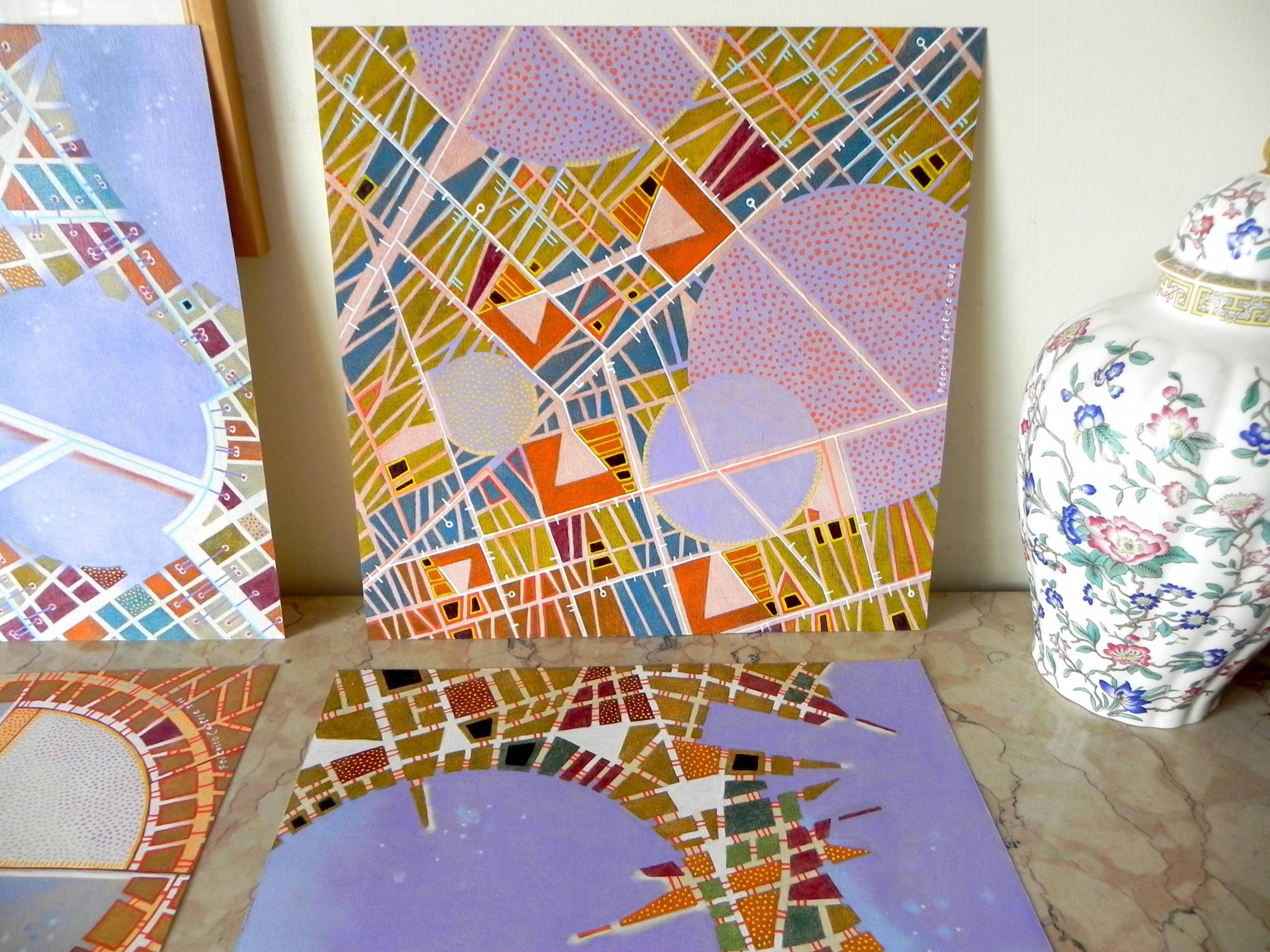 From the series “Code”, oil on paper, 30 x 30 cm, 2016. A map is an imprint, a sign of man in the landscape. An alien intelligence, observing our cities from the great distances of the space, could interpret them as the characters of an alphabet, sort of messages, a code of signs, each one different from the other, each with its own meaning and its own syntax. This hypothetical alien presence may not even realize that these cities have a purpose and a function, which are the product of the way we have adapted to live on this planet, but it could engage in an attempt to interpret this unknown language, identifying the alphabet and associating to each character a precise meaning. We will still be able to understand and share this new meanings, or will they have lost any sense for us? -- I usually paint on stretched canvas, or fine art paper prepared for oil painting. Once ended, the painting is finished with a coat of UV varnish to protect against sunlight and dust. The canvases are painted on the sides too, so they are ready to hang. My sold works are never rolled but always packed flat. I put them between two sheets of acid free paper with paper or cardboard protection for the corners, than close in a plastic envelope. The envelope is stiffen with a sheet of polystyrene on both sides, and the whole thing is completed with layers of cardboard. The package is also protected with bubble packaging. Usually the artwork is shipped in 2/3 days after receiving the payment. All my artworks are original unique paintings, signed. Certificate of Authenticity included. Thank you for your interest!