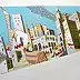 An original piece from the series “Houses on the water”, oil on thick paper, 2018. Original sold. This painting is part of a series of pieces that were commissioned from the FIRST QATAR REAL ESTATE DEVELOPMENT COMPANY. The copies of these paintings have been used for the wall decor of the rooms of the new Hilton "The Pearl" in Doha, Qatar. In this series of paintings I try to blend together the architectural and monumental elements of a place or a city. It 'a bit like recalling to the memory a journey made in the past: it will produce many confused and overlapping images. The title of the series wants to reclaim the idea of a fluid memory, moved like water, and confused like a mirage.
