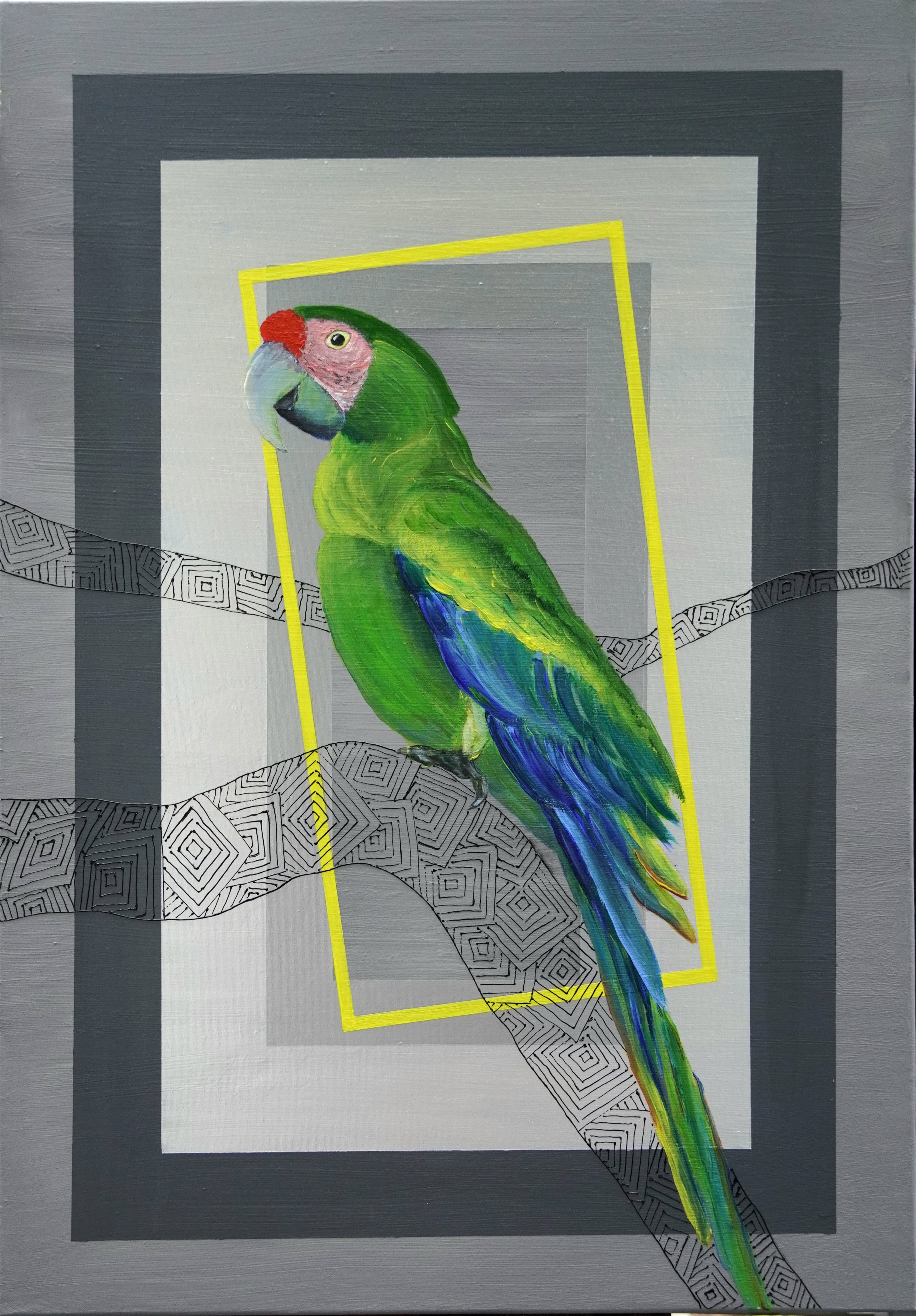 Kolejny obraz z cyklu "PTAKI". Eksplozja jaskrawych barw, które symbolizują radość I żywiołowość, subtelnie stonowana szarym tłem. Ten kontrast tworzy harmonijną całość, w której intensywne kolory papugi przyciągają wzrok, a spokojne tło wprowadza równowagę. "Papuga" wniesie do wnętrza energię, a zarazem spokój.