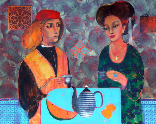 Bartosz Frączek, Renesansowi kochankowie z herbatą, akryl na płótnie, 80×100 cm, galeria Touch of Art
