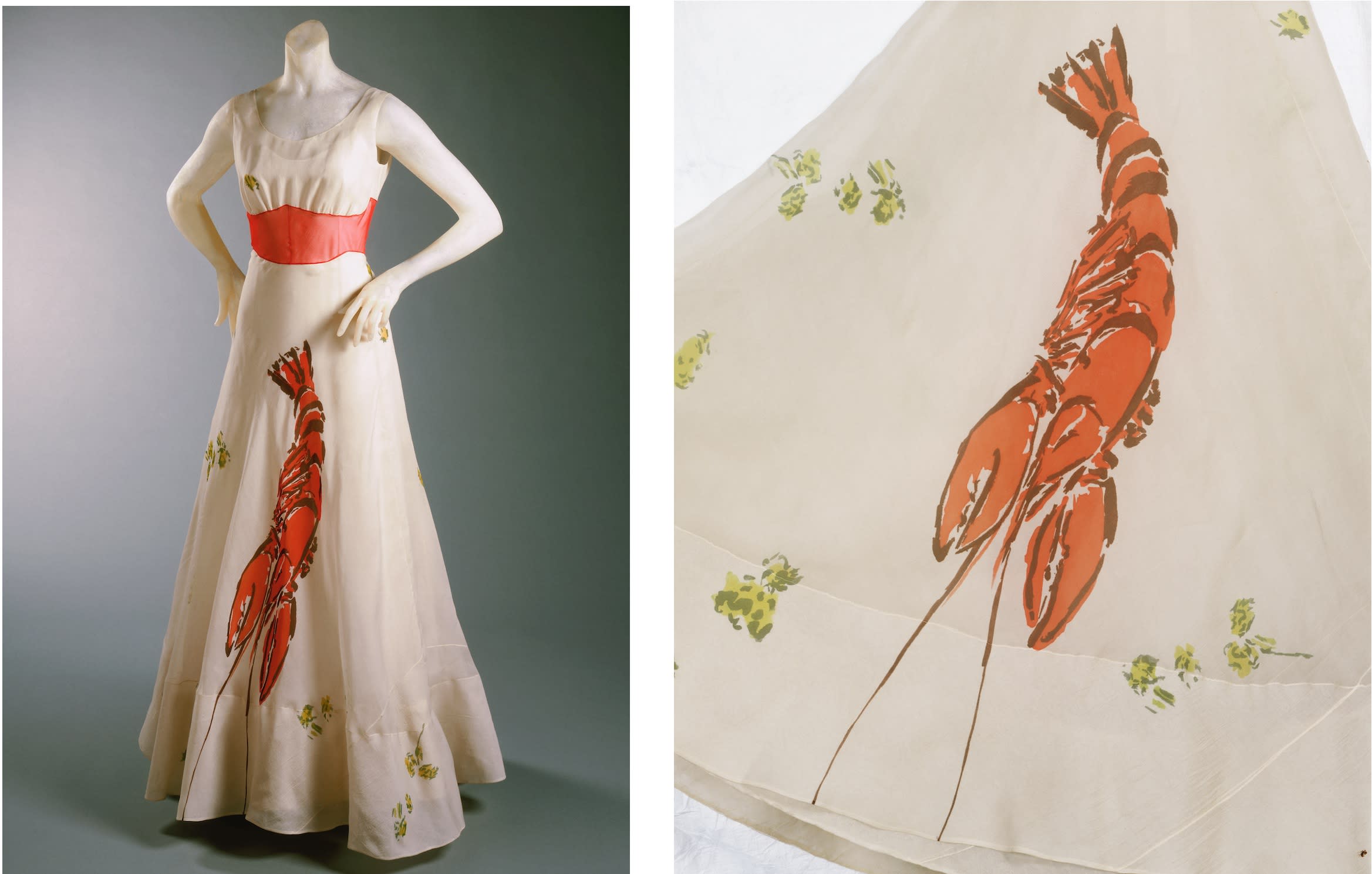 Słynna sukienka z krabem Salvadora Dalego powstała dzięki współpracy artysty z Elsą Schiparelli, źródło zdjęcia: https://www.artbasel.com/