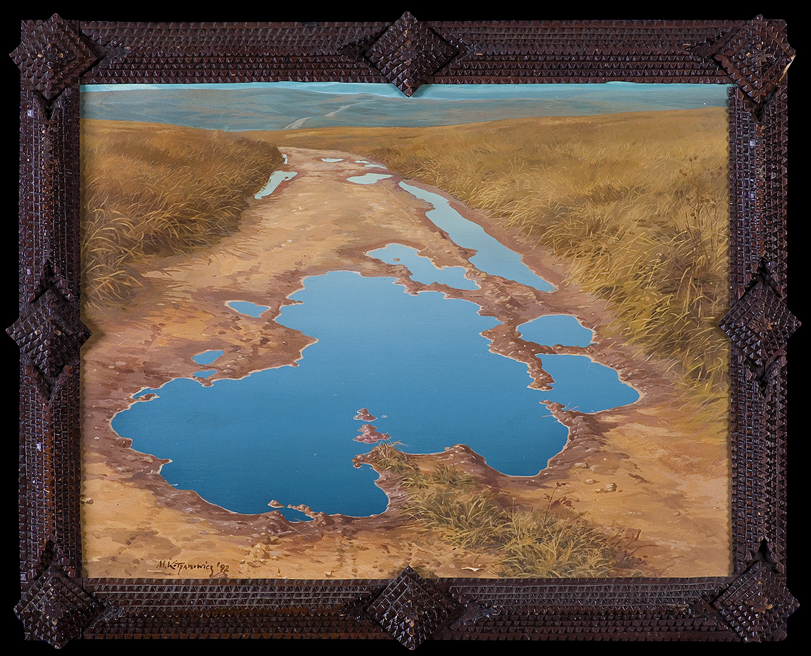 Marcin Kołpanowicz, „Niebo”, 1992 r., akryl na sklejce, 36.5×48 cm, Agra Art (źródło: sztuka.agraart.pl)