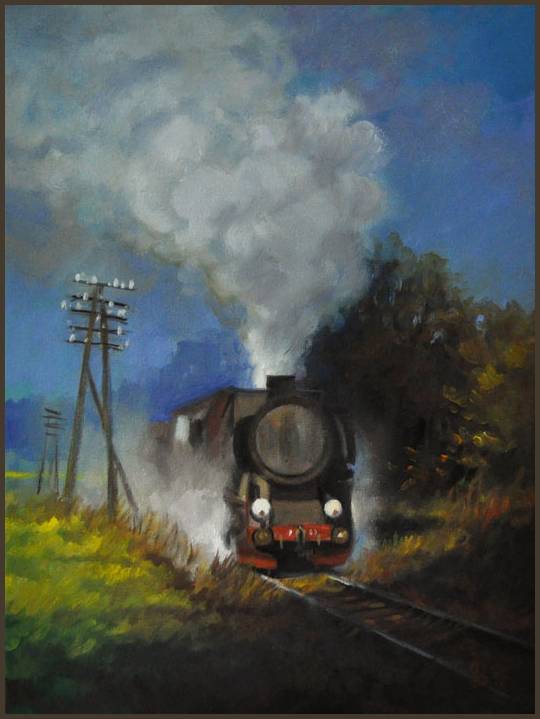 Bild Dampflokomotive am Rande von Jahren 30x40cm Gierlach