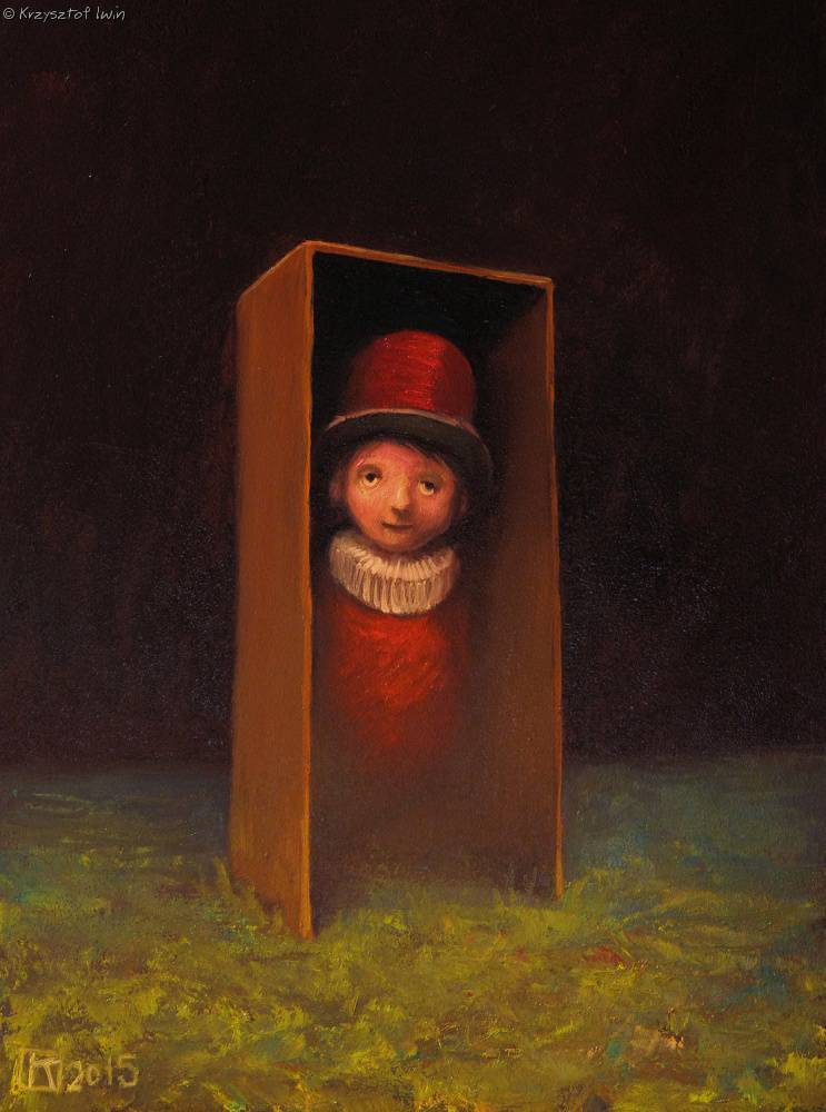 Auf dem Bild sehen wir ein Kind in roter Kleidung, in einen dunklen Hintergrund gehüllt, was die gesamte Szene wie aus einem stimmungsvollen Märchen erscheinen lässt. Warme Braun- und Dunkelgrüntöne dominieren und schaffen eine angenehme, wenn auch etwas geheimnisvolle Atmosphäre. Das Gemälde wirkt, als würde es aus der Dunkelheit hervortreten und verleiht dem Bild einen intimen, traumartigen Charakter. Der Künstler hat die Öltechnik verwendet, was man an den glatten Pinselstrichen erkennt, die der Figur Weichheit und Tiefe verleihen. Es ist das Werk von jemandem, der weiß, wie man Licht und Schatten einsetzt, um Emotionen zu verstärken. Blickt man in das Gesicht des Kindes, spürt man eine Mischung aus Neugier und Unsicherheit – als sähe es uns direkt an und fragte sich: „Wer bist du?“ Oder fragt es einfach: „Spielen?“ Die Komposition ist schlicht und doch reich an Details; die kleinen Gesten und die Art, wie der Hut gehalten wird, zeugen von einem behutsamen Umgang mit dem Thema. Dieses Bild ist zwar bescheiden, vermag jedoch das Herz zu berühren und zum Nachdenken anzuregen. Wie in einem Märchen, in dem jede Szene ihre eigene magische Welt birgt. Die Atmosphäre ist nostalgisch und erinnert mich an eine Kindheit voller Überraschungen.