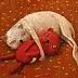 Auf dem Bild sehen wir eine weiße Katze, die ein rotes Plüschtier umarmt; beide liegen auf einem warmen, rötlich-braunen Hintergrund, der von feinen goldenen Akzenten durchzogen ist. Die Katze wirkt angespannt, ihre Augen sind weit geöffnet, als wäre sie überrascht oder leicht verunsichert. Das Plüschtier hingegen wirkt ruhig, mit einem etwas überraschenden, kindlichen Gesichtsausdruck. Die Komposition ist recht schlicht, dabei jedoch überraschend ausdrucksstark. Beim Betrachten dieses Bildes spürt man eine gewisse nostalgische, vielleicht sogar leicht humorvolle Spannung. Der Künstler hat die Impasto-Technik eingesetzt, was der Textur eine gewisse Rauheit verleiht, und Katze und Plüschtier wirken beinahe greifbar. Die Emotionen kreisen um Wärme und Geborgenheit, aber auch um eine leichte Unruhe. Werke dieser Art regen oft zum Nachdenken über Kindheit, Freundschaft oder Schutz an. Es fühlt sich einfach wie zu Hause an. Ideal für jemanden, der sich manchmal klein und verloren in der großen Welt fühlt. Meiner Meinung nach ist das ein wahres Meisterwerk des Alltäglichen. Ich denke, die Katze träumt von Abenteuern. Das Bild zieht den Betrachter durch seine Unschuld an und regt gleichzeitig dazu an, Fragen danach zu stellen, was sich hinter dem Blick der Katze verbirgt.
