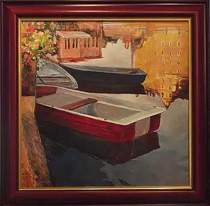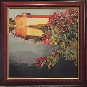 Vieste Öl auf dem Teller | 90 × 70 cm | Ein silberner Metallrahmen