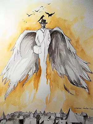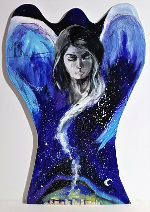 Engelsikone in den Smaragdroben mit einem Hochzeitsgeschenk