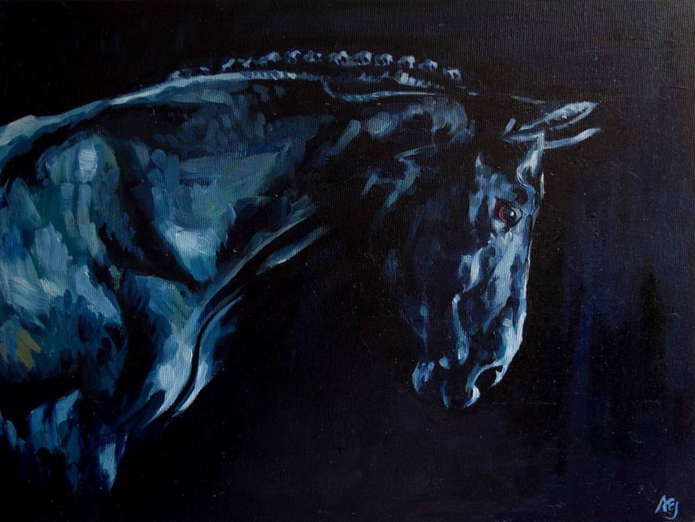 Anna Ewa Jarosz - Black horse in the stable