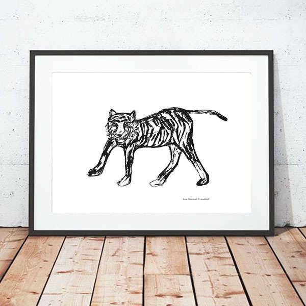 Black and white poster with a tiger