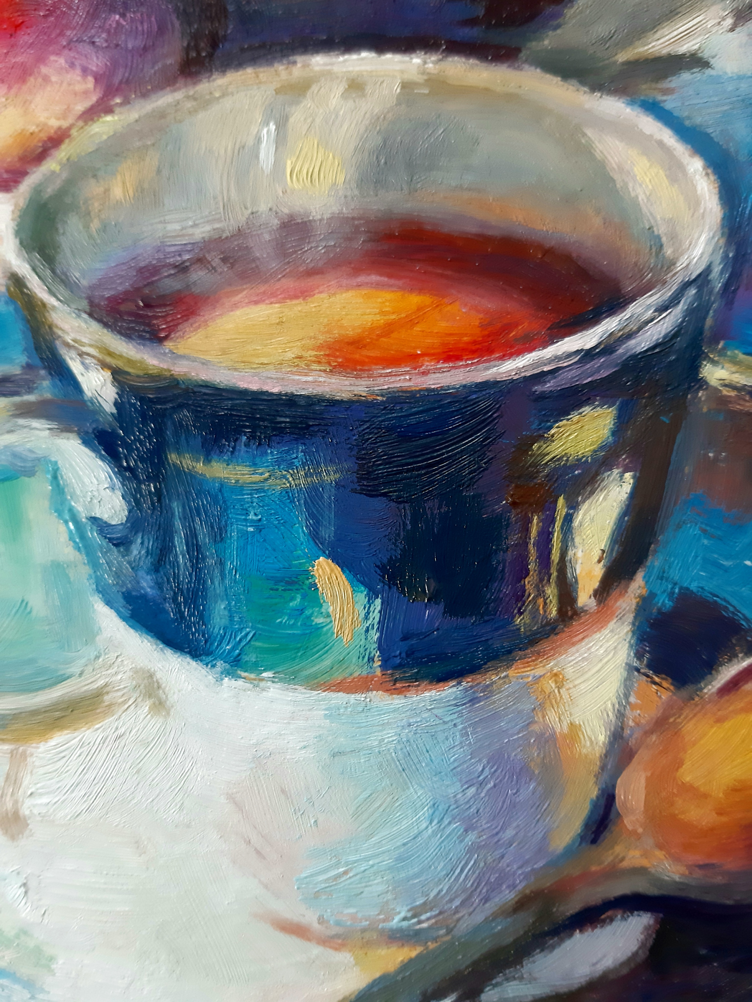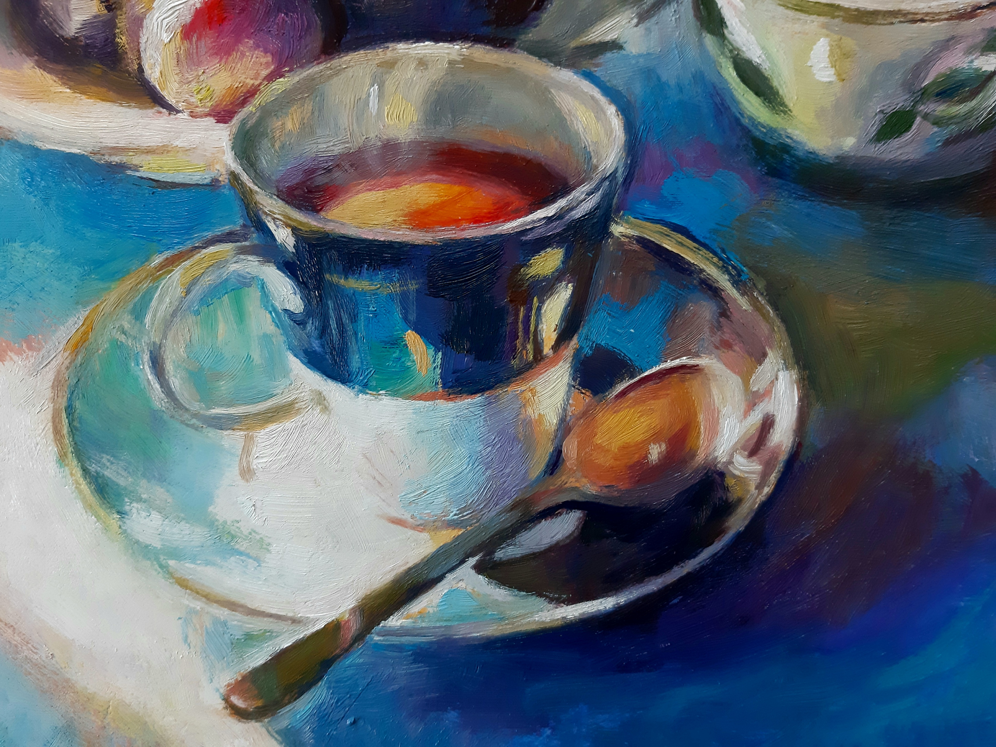 Barbara Gulbinowicz - A cup of coffee, a sugar bowl and plums