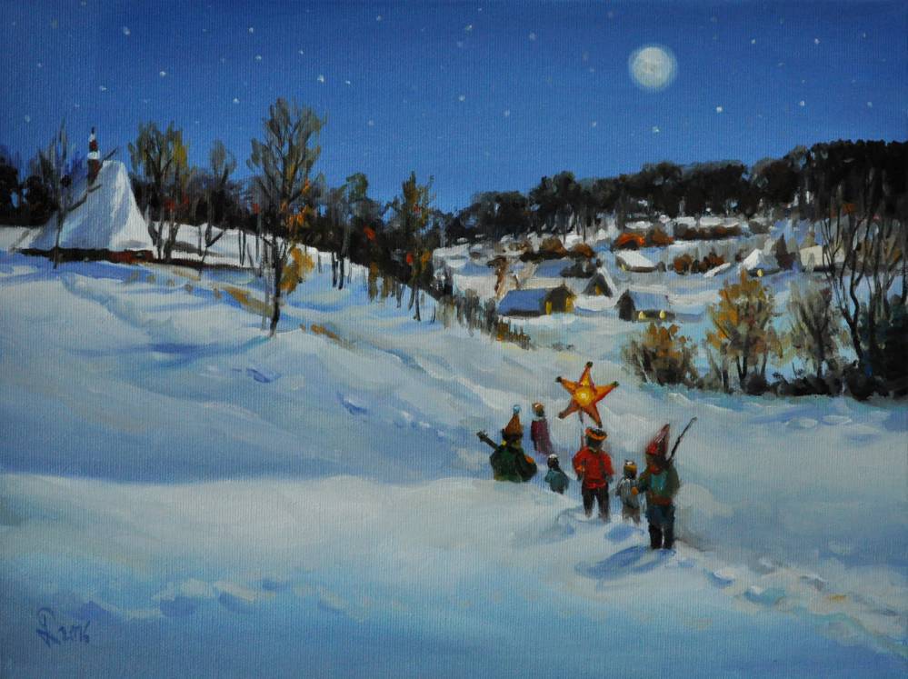 Oil painting Landscape "carolers" 30x40cm GIERLACH
