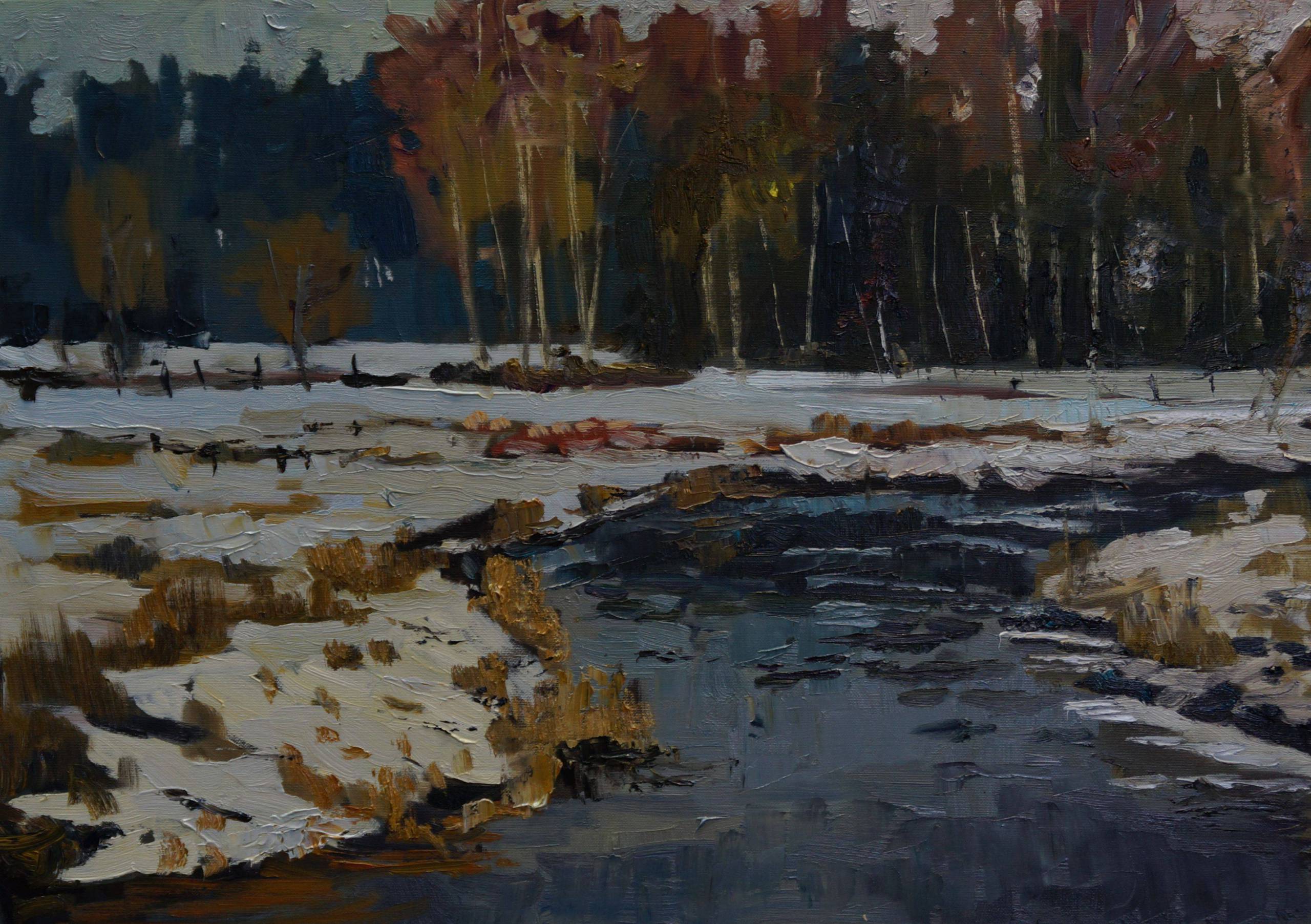 Łoknica River. Winter