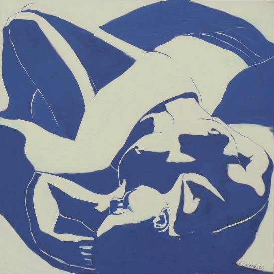 The painting captivates with its simplicity and the power of the blue-and-white contrast. There’s something magical in those fluid lines that form the shape of the human body, barely graspable like a dream. The whole composition feels as if someone captured a moment between wakefulness and sleep. Gentle curves and shadows carry intimacy and calm, a bit like a summer afternoon spent lazing around. The artistic style evokes a minimalist interpretation of the body, with a strong emphasis on form. The lines are fluid, and the use of color is restrained, which lends the piece elegance and subtlety. Wow, this painting is so cool! The atmosphere of the painting is calm, melancholic—you can almost feel the silence. It can evoke reflection on the beauty of simple moments, reminding you how important it is to pause for a moment in the rush of everyday life. A kid might say: someone here is sleeping soundly, like me after a bedtime story. Personally, I feel this painting is like a song that stays with you all day. It might even prompt thoughts about the fragility of the moment. It’s a true ode to the art of minimalism, where less is more.