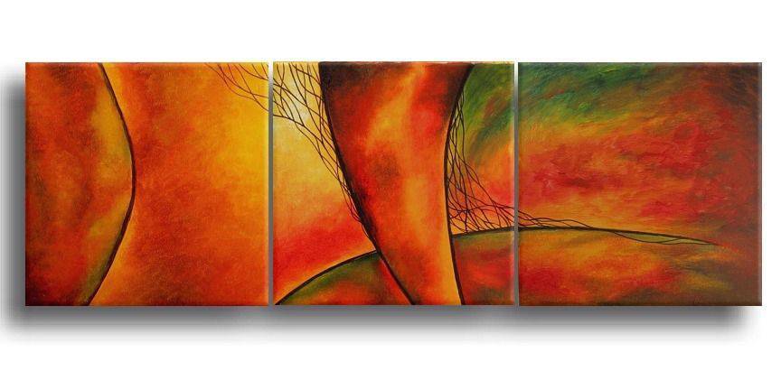 The painting consists of three panels, each radiating warm colors: intense red, orange, and green intermingle, creating a dynamic composition. Rounded shapes dominate, reminiscent of abstract forms of nature. The linework suggests movement and fluidity, yet there is something mysterious in these sinuous lines. It’s as if the artist tossed fire into the palette and let it burn across the canvas. The atmosphere is full of energy, practically bursting with emotion, yet calming at the same time. It’s like a visual dance with elements of chaos and harmony at once. The painting feels expressive, as if saying, “Hey, look at me!” Do you feel it? The artist’s style is decidedly abstract, using paint-blending techniques that add depth and texture. Looking at this piece, you can feel a genuine invitation to reflect. Is it a sunset, or perhaps something else entirely? Everyone sees something different, and that’s wonderful, isn’t it? Someone might say, “wow, that’s intense!” It may feel like you discover something new each time you look at this painting. A child might say, “It looks like a magical world!” Personally, I feel inspired, as if I wanted to immerse myself in these colors and look for answers to hidden questions.